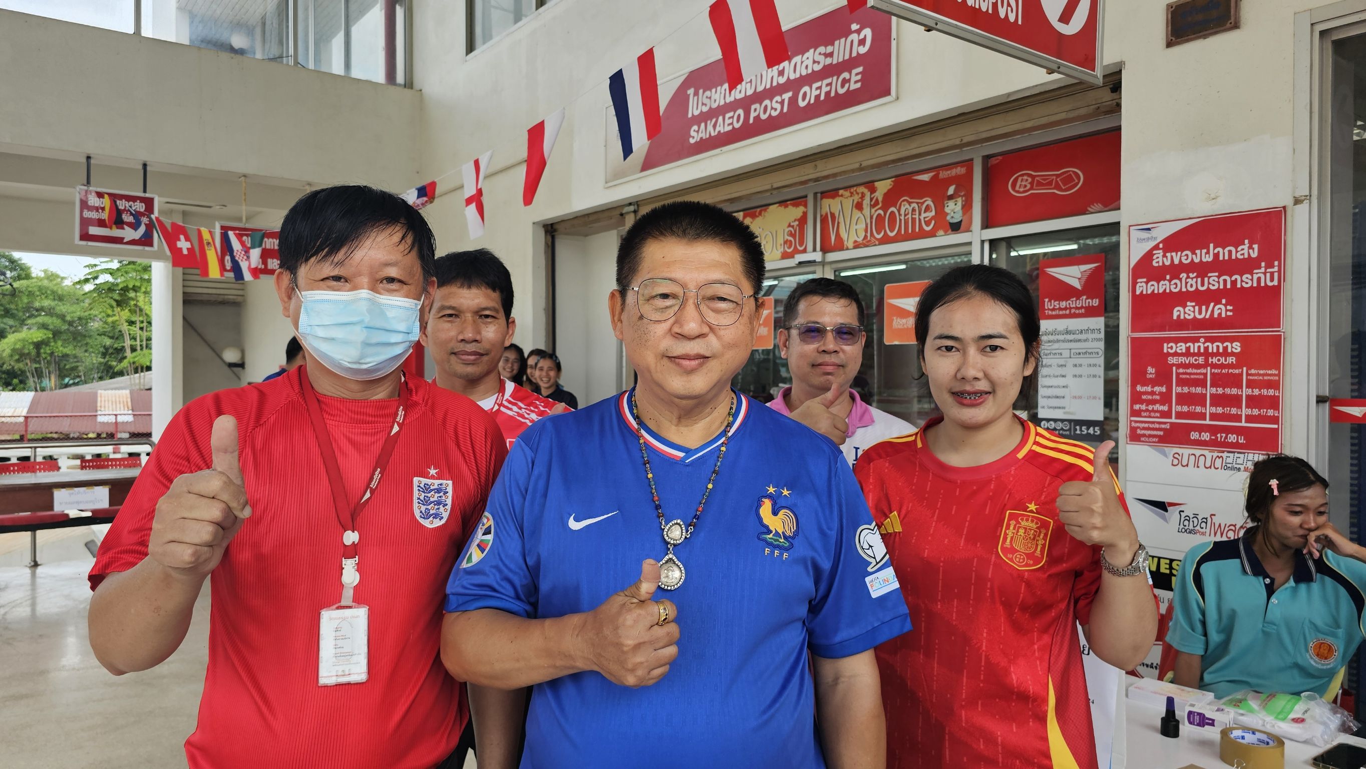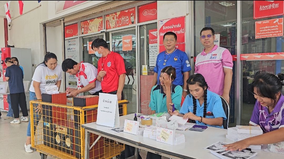 วันที่12 กรกฎาคม 2567 ผู้สื่อข่าวลงพื้นที่ไปรษณีย์จังหวัดสระแก้ว บรรยากาศ เต็มไปด้วยความคึกคัก ” ด้านนายตรีจักร์ พูนทอง หัวหน้าไปรษณีย์ไทย จังหวัดสระแก้ว ได้จัดกิจกรรม “เชียร์บอลให้มัน เฮลั่น รับโชค ทุกที่ทุกเวลา” ด้วยการร่วมทายผลการแข่งขัน ด้วยการส่งไปรษณียบัตร และโปสการ์ดออนไลน์ เชียร์ทีมโปรดในฟุตบอลยูโร 2024 ในราคาใบละ 2 บาท ได้ลุ้นโชคชุดใหญ่มูลค่ากว่า 10 ล้านบาท โดย ให้พนักใส่เสื้อทีมบอลทั้ง 2 ทีมเพื่อสร้างสีสันให้กับลูกค้า ที่นำ ไปรษณียบัตร มาส่งทายผล ในโค้งสุดท้ายของการแข่งขัน ซึ่งสร้างความสนใจ ให้ประชาชนเป็นจำนวนมาก