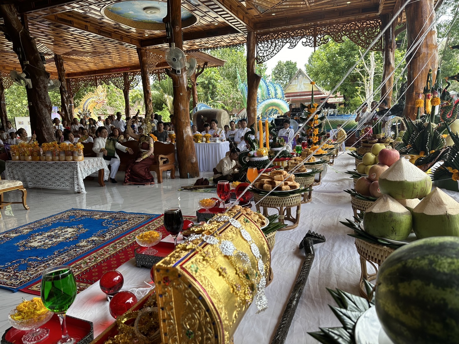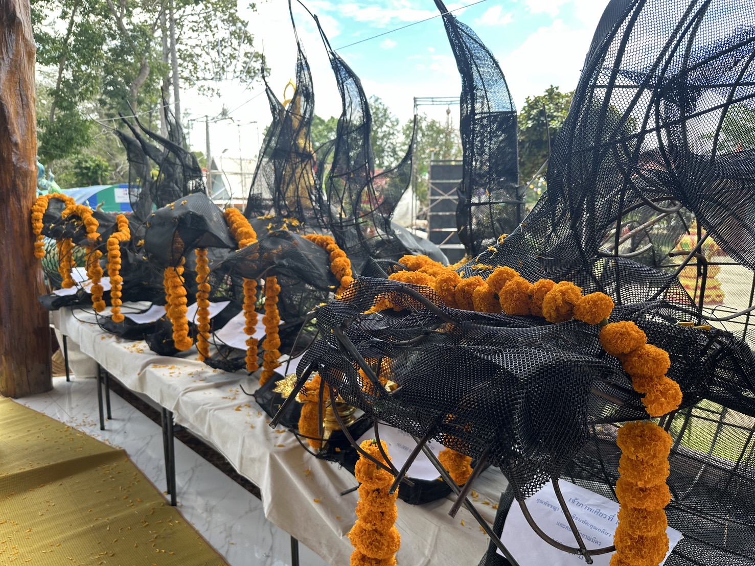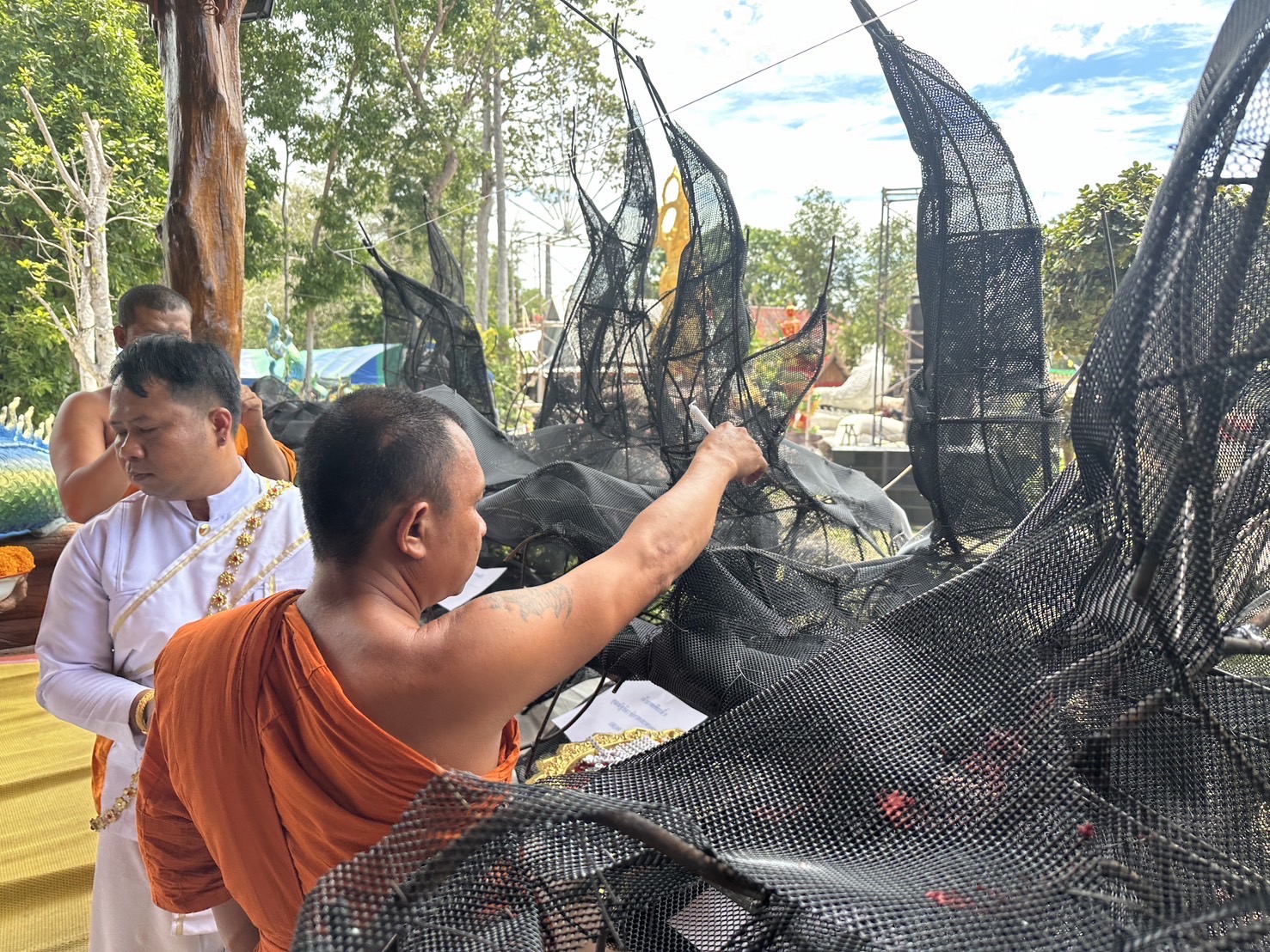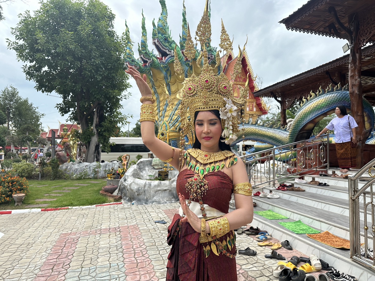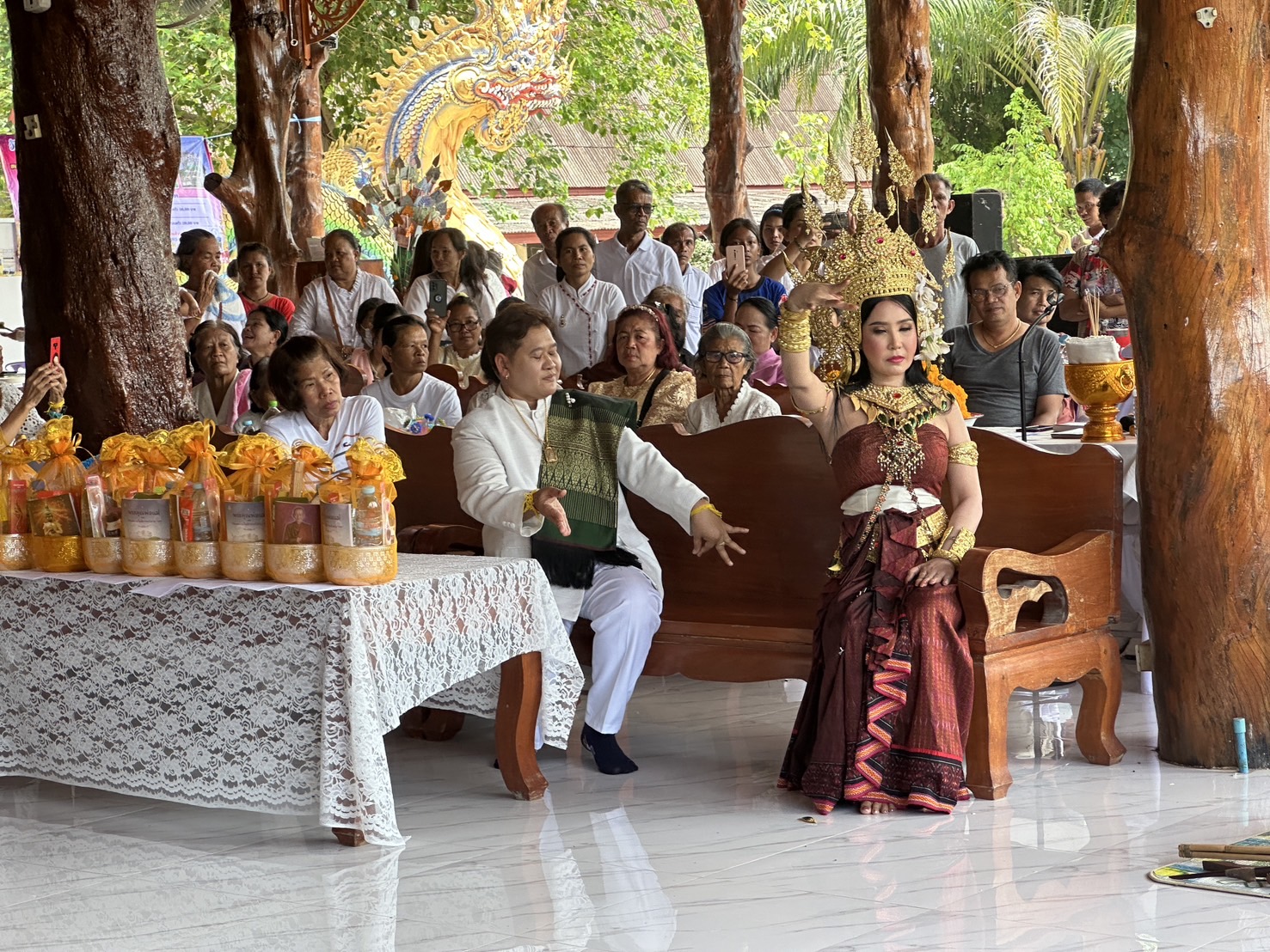 เมื่อเวลา 10.00 น. วันนี้ ( 14 ก.ค. 2567 ) ที่ วัดตะเคียนบวรรัตน์ ต.อู่โลก อ.ลำดวน จ.สุรินทร์ ได้มีพิธีบวงสรวงยกเศียรองค์พญานาค ขึ้น โดยมีนางรำกิตติมศักดิ์ในการรำบวงสรวงถวายองค์ปู่พญานาค คือ นางสาว ณัฐธิดา ชัยหาญ หรือ “ณัฐธิดานาคี” ซึ่งเป็นเจ้าภาพหลักในครั้งนี้ด้วย พร้อมกับครอบครัว โดยมีพระครูสังฆรักษ์ปราโมทย์ กิตติญาโณ เจ้าอาวาสวัดตะเคียนบวรรัตน์ เป็นประธานในพิธี และประชาชนที่ศรัทธามาร่วมในพิธีกว่า 500 คน