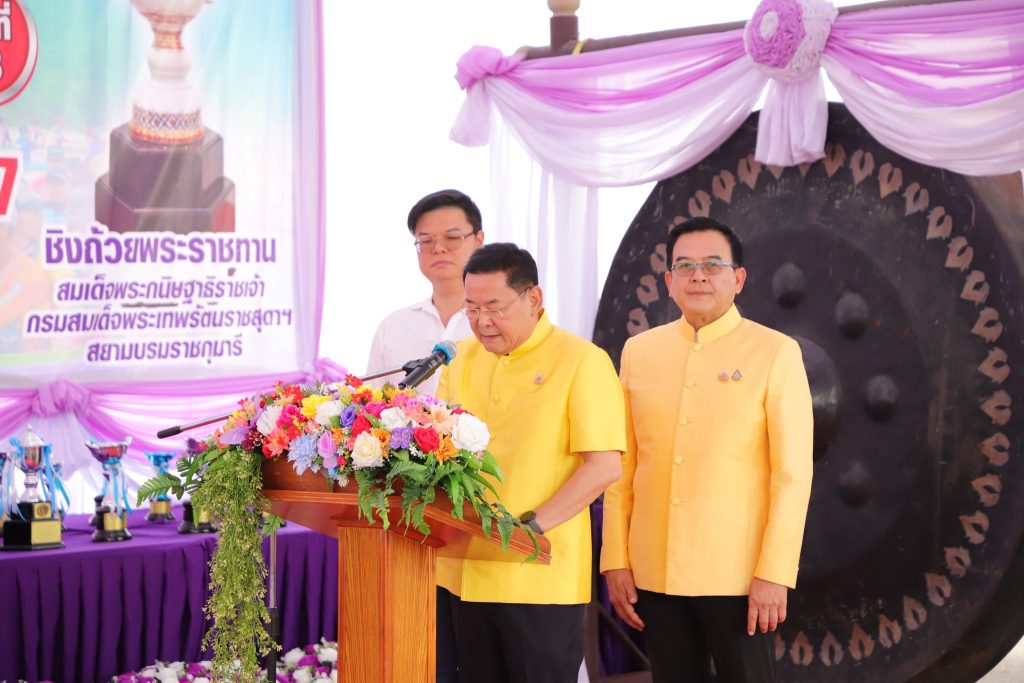 วันนี้ (13 กรกฎาคม 2567) เวลา 11.00 น. ที่บริเวณริมเขื่อนคลองชลประทานดี 7 (คลองตาขำ) หมู่ที่ 2 ต.ชัยมงคล อ.เมือง จ.สมุทรสาคร หน้า อบต.ชัยมงคล นายนภินทร ศรีสรรพางค์ รัฐมนตรีช่วยว่าการกระทรวงพาณิชย์ เป็นประธานเปิดการแข่งขันเรือยาวประเพณีจังหวัดสมุทรสาคร ครั้งที่ 18 ประจำปี 2567 ชิงถ้วยพระราชทานสมเด็จพระกนิษฐาธิราชเจ้า กรมสมเด็จพระเทพรัตนราชสุดาฯ สยามบรมราชกุมารี โดยนายศรีศักดิ์ วัฒนพรมงคล นายกสมาคมกีฬาแห่งจังหวัดสมุทรสาคร ร.ต.ประพันธ์ ถึกสกุล นายอำเภอเมืองสมุทรสาคร นายทนงศักดิ์ งามกาละ นายก อบต.ชัยมงคลชัยมงคล ส่วนราชการ ภาคเอกชน ครูฝึก นักกีฬาเรือยาว และประชาชน และสื่อมวลชน เข้าร่วมพิธีเปิดเป็นจำนวนมาก โดยไฮไลท์เป็นขบวนอัญเชิญถ้วยพระราชทานฯ ที่ใช้นางรำร่วม 500 คน