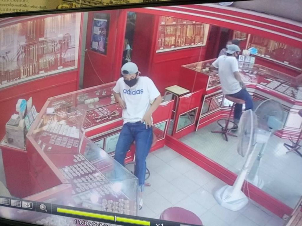 เมื่อเวลา16.50 น.วันที่ 13 กรกฎาคม 2567 ร.ต.อ.หญิงมินตรา พจนมณี รอง สว.สอบสวน ร้อยเวร สอบสวน เมืองเพชรบุรี จ.เพชรบุรี ได้รับแจ้งมีเหตุ คนร้ายเป็นชาย1ราย สวมเสื้อสีขาว กางเกงยีนส์ขายาว รองเท้าสีขาว สวมแมส และหมวกปิดบังใบหน้า ทำทีเข้ามาเลือกซื้อทองภายใน ร้านทองรวมเพชร ถ.พาณิชย์เจริญ ต.ท่าราบ อ.เมือง จ.เพชรบุรี ก่อนสบโอกาสก่อเหตุชิงทรัพย์ สร้อยคอทองคำลายห่วงขั้นปล้อง น้ำหนักร่วม 5บาท มูลค่าประมาณ 218,250บาท ก่อนคนร้ายรีบวิ่งหลบหนีออกไปจากร้าน ขึ้นรถจักยานยต์นยี่ห้อฮอนด้า ป้ายทะเบียน 1กน-2012 เพชรบุรี ขี่หลบหนีไปก่อนรายงานให้ พ.ต.อ.วันชัย ขาวรัมย์ ผกก.สภ.เมืองเพชรบุรี นำกำลังชุดสืบสวนไปตรวจสอบบริเวณ