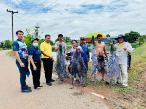 นายคนึง คมขำ ประมงจังหวัดฉะเชิงเทรา พร้อมด้วย นางจรีภรณ์ มีศรี หัวหน้ากลุ่มพัฒนาและส่งเสริมอาชีพการประมง นายสุทธิวุฒิ แก่นทอง หัวหน้ากลุ่มบริหารจัดการด้านการประมง และนายนภาธิปัตย์ สิงห์สูง นักวิชาการประมง พร้อมด้วย นายวัลลภ ทิมดี รรท.ผู้อำนวยการศูนย์วิจัยและพัฒนาการเพาะเลี้ยงสัตว์น้ำชายฝั่งฉะเชิงเทรา ร่วมกับ นายฐพัชร์ โตสงค์ นายก อบต.บางกระเจ็ด ทีมประมงอาสาบางคล้าและชาวบ้านดำเนินกิจกรรมการควบคุม และกำจัดปลาหมอคางดำในแหล่งน้ำธรรมชาติ บ้านคลองบางกระพ้อ หมู่ 4 และ บ้านคลองเตย หมู่ 9 ต.บางกระเจ็ด อ.บางคล้า จ.ฉะเชิงเทรา