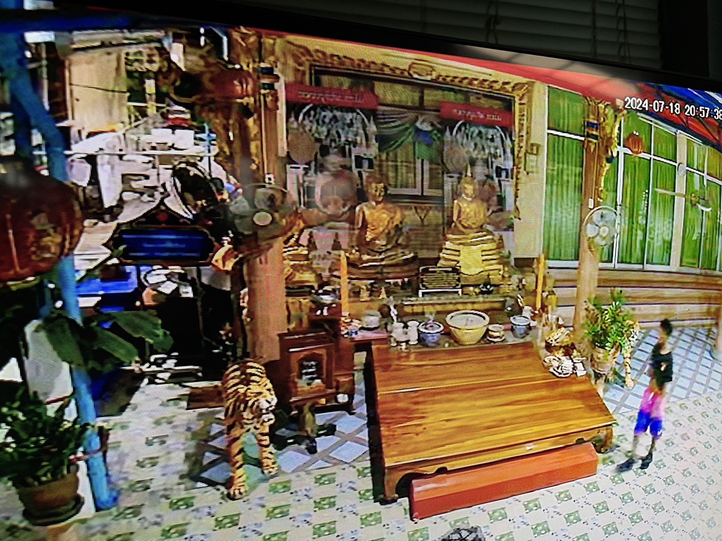 ที่เกิดเหตุพบพระครูปลัด ศักดา ผู้ช่วยเจ้าอาวาสวัดหนองขาม ได้พาเจ้าหน้าที่ตำรวจ ไปชี้ยังจุดเกิดเหตุ ซึ่งมีคนร้ายเข้ายกตู้บริจาคภายในศาลาการเปรียญ ได้เงินไปจำนวนมาก และจากการตรวจสอบกล้องวงจรปิดภายในวัด ซึ่งสามารถจับภาพคนร้ายได้
