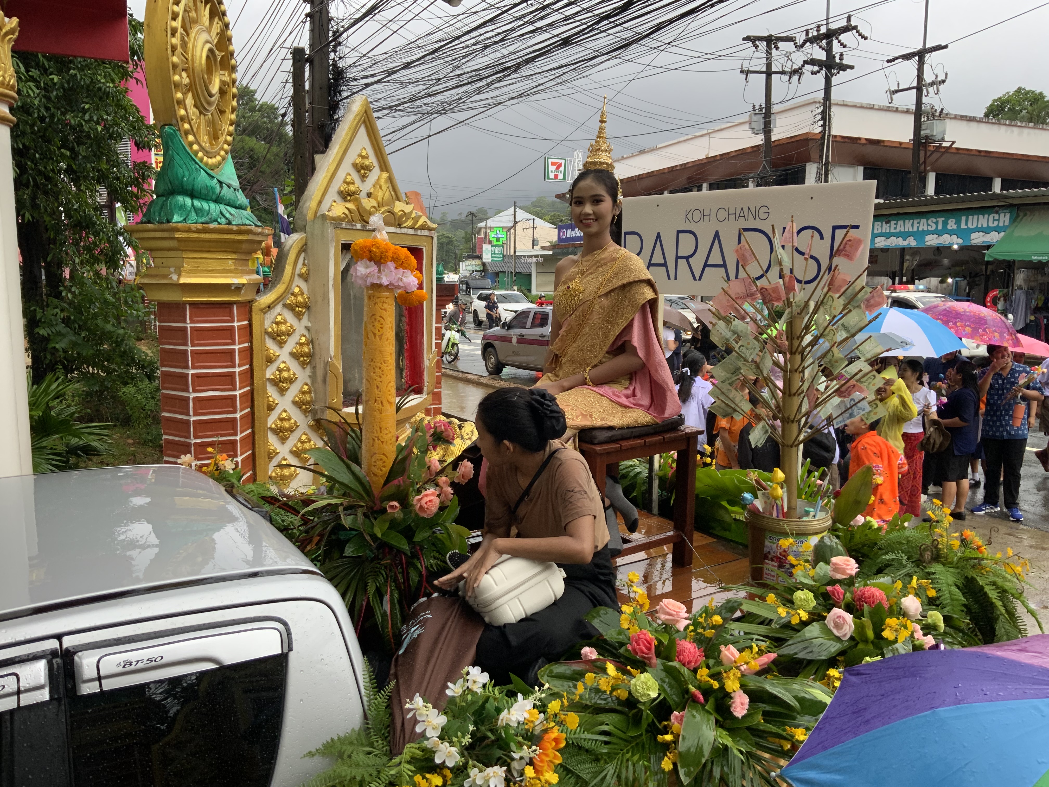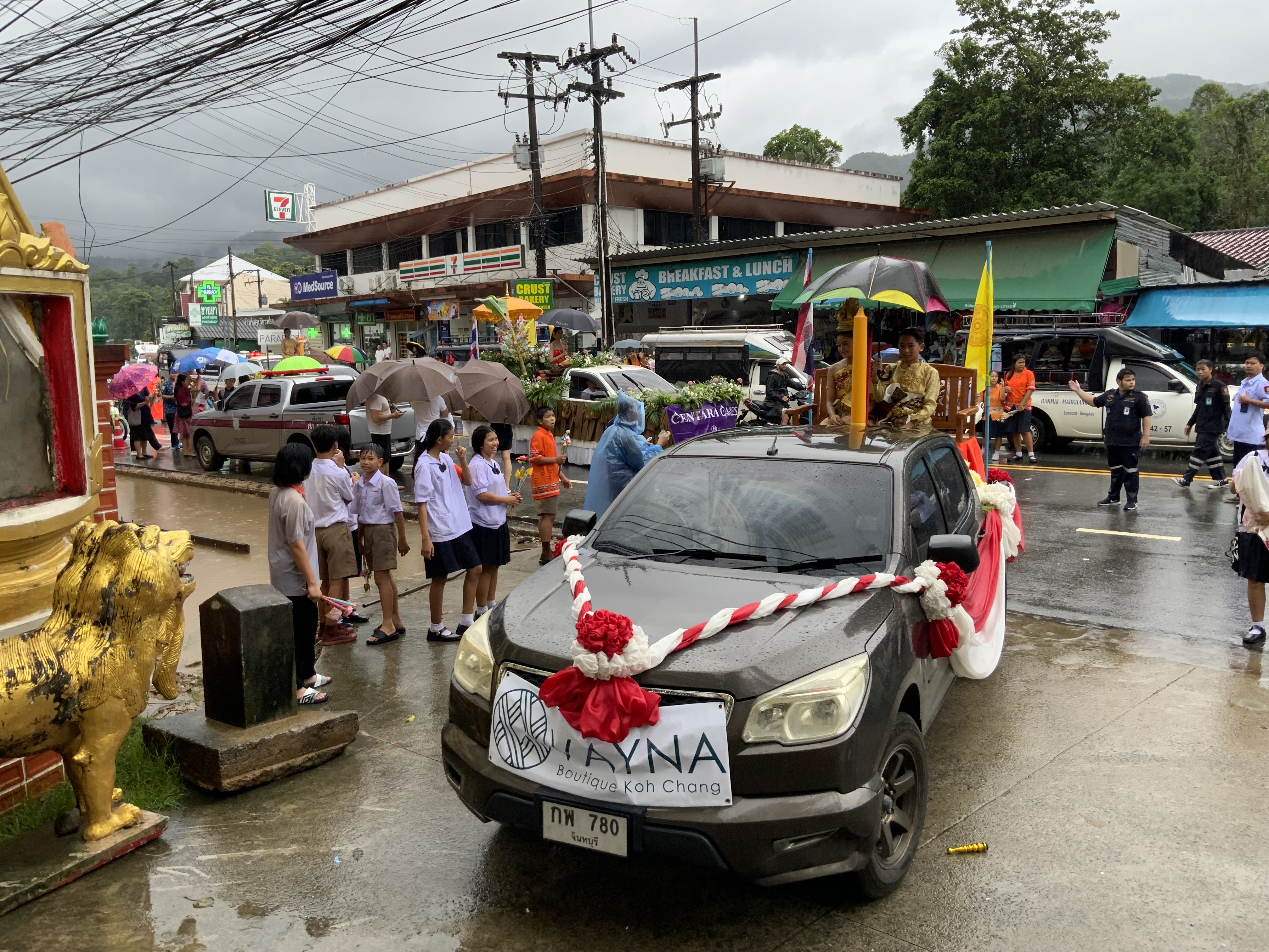 อ.เกาะช้าง จ.ตราด/เวลา 13.30 น.วันที่ 19 กรกฎาคม 2567 ชุมชนหมู่ 4 ตำบลเกาะช้างจัดกิจกรรม“สืบสานวัฒนธรรมไทย โดยใช้แนวทางบวร”(บ้าน วัด โรงเรียน) ร่วมกับชาวอำเภอเกาะช้าง สมาคมโรงแรมรีสอร์ทจังหวัดตราดนำโดยนายสารพล ประศาสน์ศิลป์ นายกสมาคมโรงแรมรีสอร์ทจังหวัดตราดนำผู้ประกอบการโรงแรม รีสอร์ทกว่า 10 แห่ง พร้อมโรงเรียนหลายแห่ง เช่น โรงเรียนบ้านคลองพร้าว ร่วมจัดกิจกรรมถวายเทียนจำนำพรรษาให้กับวัดคลองพร้าว ต.เกาะช้าง อ.เกาะช้าง จ.ตราด