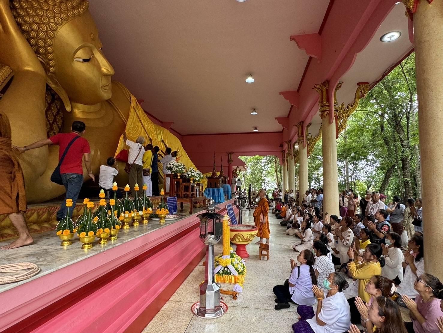 วันนี้(20 กรกฎาคม2567) ตรงกับวันพระขึ้น15ค่ำ เดือน8และวันอาสาฬหบูชาพระครูสิทธิคีรีเขต เจ้าอาวาสวัดสุวรรณคีรี(เขาดงยาง) เจ้าคณะ ตำบล หนองแหน อำเภอพนมสารคาม จังหวัดฉะเชิงเทรา นำพุทธศาสนิกชน ร่วมทำบุญในวันอาสาฬหบูชาโดยเริ่มด้วยการตักบาตรถวายเทียน จำนำพรรษาและรับพรอุทิศส่วนกุศลให้ญาติโยมบิดามารดา เจ้ากรรมนายเวรรวมถึงญาติผู้ล่วงลับพร้อมฟังพระรับพรกรวดน้ำ ก่อนเริ่มประเพณีแห่เทียนจีวรขึ้นเขาเพื่อห่มองค์พระนอน