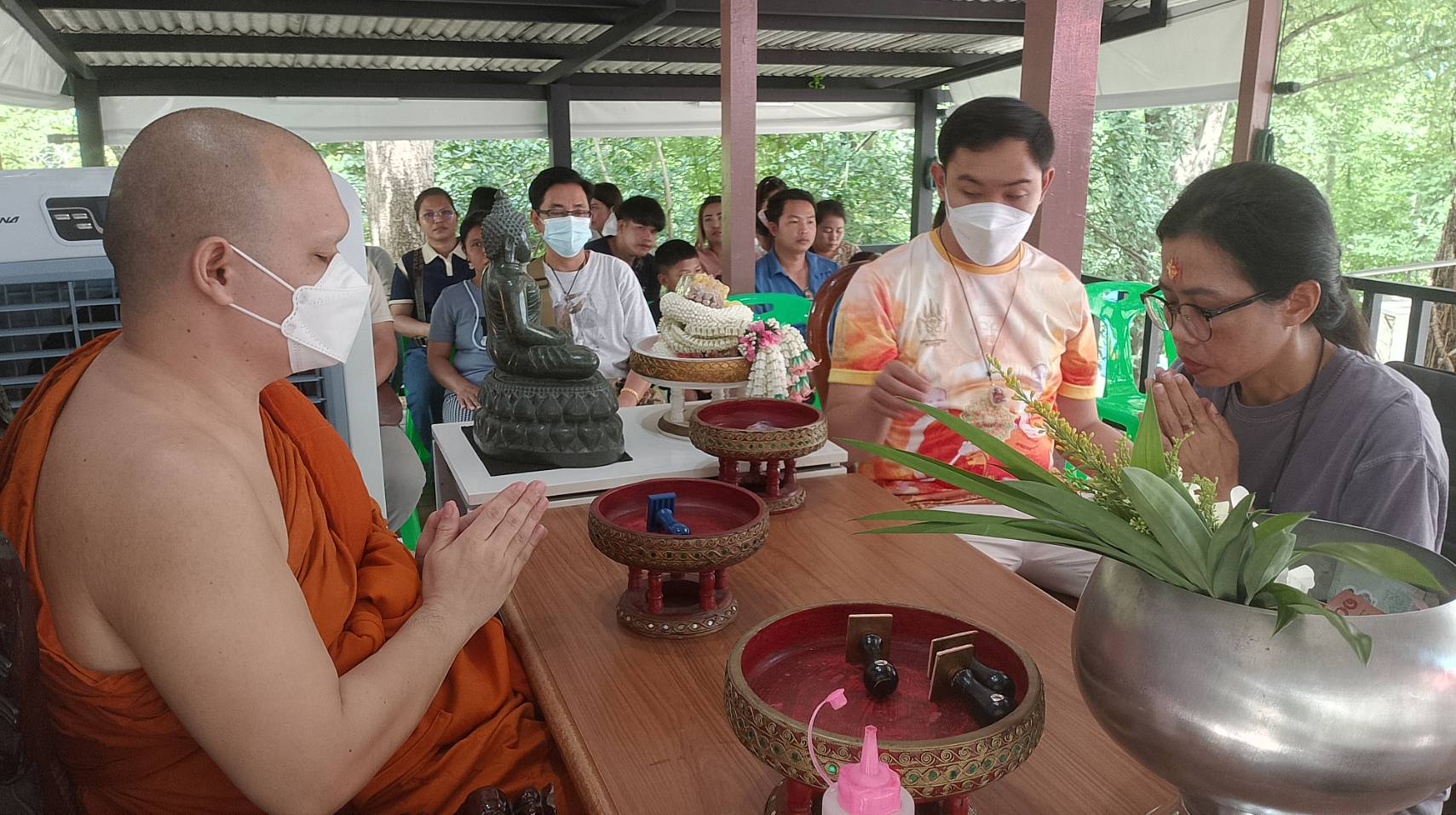 เวลา09.00น.เป็นต้นมาของวันที่ 21ก.ค.2567 ที่วัดเขาไม้แดง ต.บางพระ อ.ศรีราชา จ.ชลบุรี ได้มีประชาชนจำนวนมากจากทุกภาคของประเทศทยเดินทางมาทำบุญที่วัดในโอกาสวันเข้าพรรษา ถวายเทียนพรรษาและผ้าอาบน้ำฝนและถือโอกาสมาจองคิวเจิมมือ”นะพระแม่โพสพมีกินไม่รู้สิ้น”และเจิมหน้าผาก”พระพุทธพักตร์หน้าทอง”กันอย่างไม่ขาดสาย ส่วนมากผู้ที่เดินทางมาจะเป็นพ่อค้า-แม่ค้า-นักธุรกิจ-หนุ่มสาวโรงงาน จากทั่วประเทศไทยและผู้ที่ศรัทธาในการเจิมมือ”นะพระแม่โพสพมีกินไม่รู้สิ้น” และเจิมหน้าผาก“พระพุทธพักตร์หน้าทอง” พระครูวิสิฐ์ธรรมโสภณ หรือ หลวงพ่อสง่า เจ้าอาวาสวัดเขาไม้แดง และ พระครูปลัดนพภัณฑ์หรือพระปลัดบิว ผู้ช่วยเจ้าอาวาสวัดเขาไม้แดง ศิษย์เอกหลวงพ่อสง่า ผู้รับครอบครูและครอบมือในการทำการเจิมยันต์พระพุทธพักตร์หน้าทอง หนึ่งเดียวในไทย