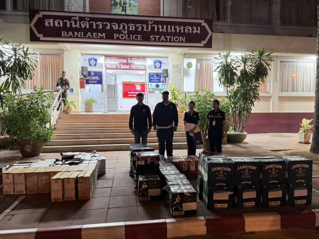 วันที่22 ก.ค.67 ผู้สื่อข่าวรายงานว่า พ.ต.อ.อัค ราวัส สีห์ธนบุญอุบล ผกก.ตชด.14 พร้อมด้วย พ.ต.อ.ทัยเลิศ ลือปือ ผกก.1บก.ทท.3 พ.ต.อ.พงษ์ศิริ เก่งนอก ผกก.สืบสวนภ.จว.เพชรบุรี พ.ต.ท.เชาวลิต ฆังคะรัตน์์ รอง ผกก.ตชด.14 พ.ต.ท.ธีรศักดิ์ ศรีราชยา ผบ.ร้อย ตชด.144 พ.ต.ท.ศุกภร เจนอนุศาสตร์ สวญ.สภ.ยี่สาร ร่วมกันสั่งการให้เจ้าหน้าที่ ตชด.144 ชุดจับกุมร่วมกับ ตร.สภ.ยี่สาร เข้าปฏิบัติหน้าที่ตรวจสอบ หลังได้รับแจ้งจากเจ้าพนักงานสรรพสามิต ว่าจะมีการลักลอบลำเรียงสินค้าหนีภาษีจากภาคใต้ขึ้นสู่ กทม. โดยใช้เส้นทางลำเรียงผ่านถนนเส้น อ.บ้านแหลม จ.เพชรบุรี มุ่งหน้าเข้า กทม. เจ้าหน้าที่ได้ทำการสืบสวนหาข่าว จนทราบว่ากลุ่มขบวนการรถเป้าหมาย มีจำนวน3คัน โดยเจ้าหน้าที่ได้นำกำลังดังซุ่ม จุดที่1.แยกหน้าสำนักงานเทศบาล อ.บ้านเเหลม จ.เพชรบุรี และจุดที่ 2. บริเวณหน้า สภ.ยี่สาร อ.อัมพวา จ.สมุทรสงคราม จนสามารถสกัดจับรถของขบวนการลักลอบลำเรียงสินค้าหนีภาษีได้ทั้ง3คัน