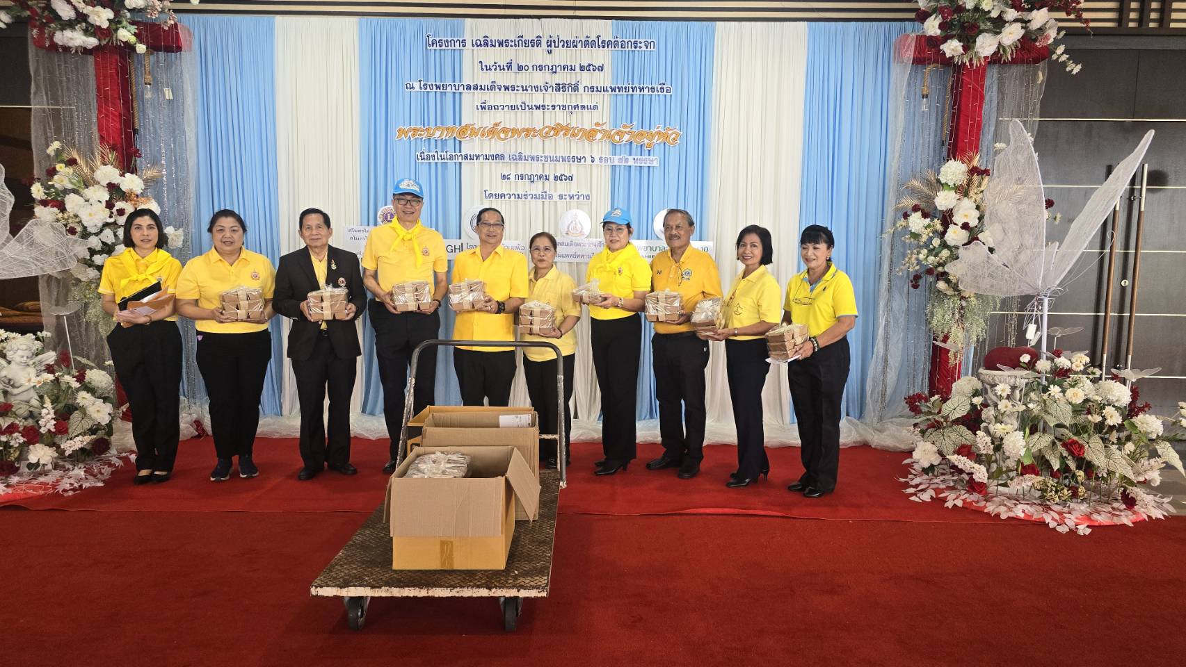 การจัดโครงการฯ ในครั้งนี้ ได้รับการสนับสนุนอย่างดียิ่ง จากทางโรงพยาบาลจักษุบ้านแพ้ว ที่จัดหน่วยแพทย์เคลื่อนที่พร้อมทีมแพทย์และพยาบาลผู้เชี่ยวชาญ มาช่วยเหลือและดำเนินการในการผ่าตัดต้อกระจกให้กับผู้ป่วย โรงพยาบาลสมเด็จพระนางเจ้าสิริกิติ์ กรมแพทย์ทหารเรือ อำนวยความสะดวกสนับสนุนสถานที่ พร้อมเจ้าหน้าที่ พยาบาล และโรงพยาบาลสัตหีบ กม.10 จัดกลุ่มผู้ที่รอคอยการผ่าตัดต้อกระจก เข้ารับการดำเนินการผ่าตัดในครั้งนี้ เริ่มตั้งแต่การคัดกรองผู้ป่วย จำนวน 225 คน เมื่อวันที่ 7 ก.ค.67 และดำเนินการผ่าตัดต้อกระจกเปลี่ยนเลนส์ตา ในที่ 20 ก.ค.67 จำนวน 165 คน