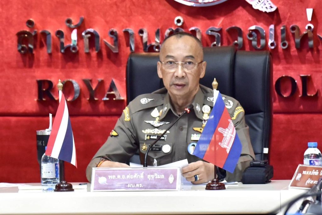 จากการที่ นายเศรษฐา ทวีสิน นายกรัฐมนตรี ได้ประสานไปยัง สมเด็จมหาบวรธิบดี ฮุน มาแนต นายกรัฐมนตรีแห่งราชอาณาจักรกัมพูชา เพื่อให้มีความร่วมมือในการปราบปรามแก๊งคอลเซ็นเตอร์ ที่ระบาดและสร้างความเสียหายจำนวนมากแก่พี่น้องประชาชนในปัจจุบัน วันนี้ (25 กรกฎาคม 2567) เวลา 10.00 น. พล.ต.อ.ต่อศักดิ์ สุขวิมล ผู้บัญชาการตำรวจแห่งชาติ (ผบ.ตร.) ได้เข้าร่วมประชุมกับ พล.ต.อ.ซอ เทต ผบ.ตร.กัมพูชา และคณะ โดยผ่านระบบประชุมทางไกล ซึ่งที่ประชุมฝ่ายไทยยังประกอบด้วย พล.ต.อ. กิตติ์รัฐ พันธุ์เพ็ชร์ รอง ผบ.ตร. , พล.ต.ท.ธัชชัย ปิตะนีละบุตร ผู้ช่วย ผบ.ตร. และมีหน่วยงานที่เกี่ยวข้อง เช่น กองบัญชาการตำรวจสืบสวนสอบสวนอาชญากรรมทางเทคโนโลยี , สำนักงานตรวจคนเข้าเมือง , ตำรวจภูธรจังหวัดที่มีพื้นที่ติดกับประเทศกัมพูชา , ธนาคารแห่งประเทศไทย , สำนักงานป้องกันและปราบปรามการฟอกเงิน (ปปง.) , สำนักงานคณะกรรมการกิจการกระจายเสียง กิจการโทรทัศน์ และกิจการโทรคมนาคมแห่งชาติ (กสทช.) และ กระทรวงดิจิทัลเพื่อเศรษฐกิจและสังคม หรือ ดีอี เข้าร่วมประชุมด้วย ณ ห้องประชุม ศปก.ตร. อาคาร 1 ชั้น 20 สำนักงานตำรวจแห่งชาติ