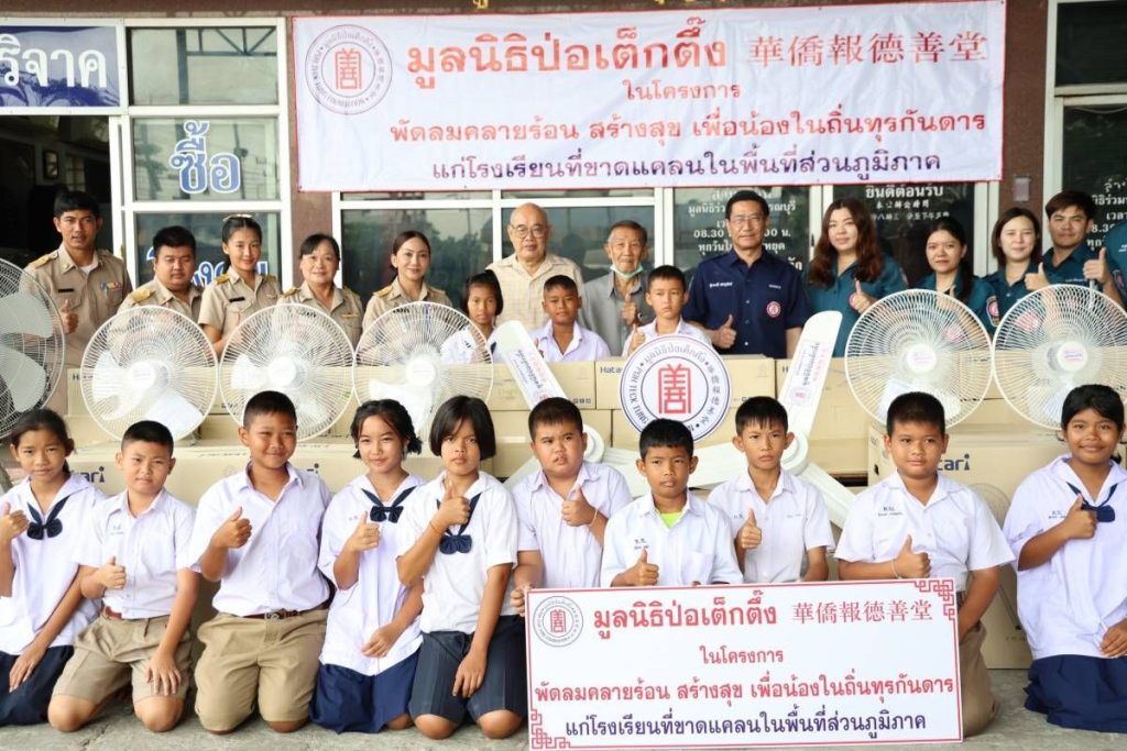 มูลนิธิป่อเต็กตึ๊ง รุดเพิ่มโครงการบรรเทาทุกข์สภาวะอากาศร้อนภายในสถานศึกษาในถิ่นทุรกันดาร จัดงบกว่า 5 แสนบาท มอบชุดพัดลมเพดาน แขวนผนัง และตั้งพื้น นำร่อง 5 จังหวัด 25 โรงเรียน