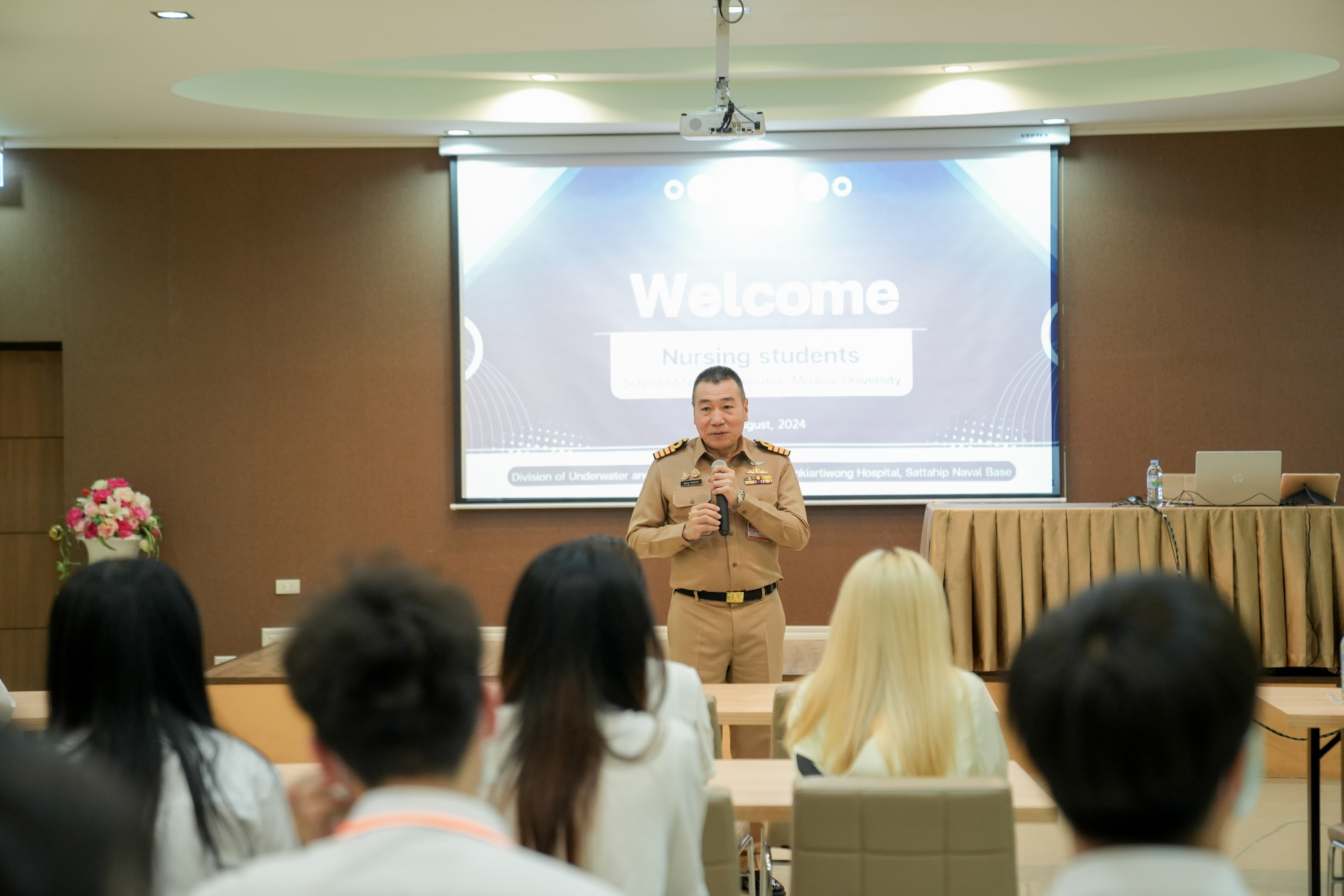 โรงพยาบาลอาภากรเกียรติวงศ์ ฐานทัพเรือสัตหีบ ต้อนรับ คณะอาจารย์และนักศึกษาพยาบาลจากสาธารณรัฐประชาชนจีน ตามที่คณะพยาบาลศาสตร์ มหาวิทยาลัยบูรพา กำหนดจัดโครงการ “การแลกเปลี่ยนเรียนรู้การพยาบาลนานาชาติและความแตกต่างทางวัฒนธรรมสำหรับอาจารย์และนิสิตจาก School of Nursing, Wenzhou Medical University สาธารณรัฐประชาชนจีน” เข้าเยี่ยมชมและศึกษาดูงาน ด้านการให้บริการบำบัดด้วยออกซิเจนแรงดันสูง (HBOT Hyperbaric Oxygen Therapy) เพื่อการรักษาโรค