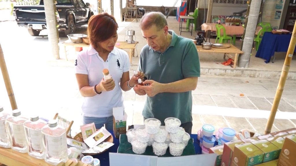 เกลือจืด เป็นผลึกสารแคลเซียมซัลเฟตที่ทับถมอยู่ในนาเกลือ หลังจากเกษตรกรเก็บผลผลิตเกลือออกไปหมดแล้ว เมื่อก่อนชาวนาเกลือยังไม่เห็นประโยชน์ของเกลือจืดจึงมักขุดทิ้ง ปัจจุบันได้มีการนำเกลือจืดมาแปรรูปเป็นผลิตภัณฑ์แป้งร่ำเกลือจืดโดยเป็นส่วนผสมของเครื่องสำอาง อาทิ แป้งนวล แป้งผง แป้งขมิ้น แป้งไพร ฯลฯ สามารถช่วยสร้างรายได้ให้ชาวนาเกลือเพิ่มสูงขึ้น จ.สมุทรสงคราม เป็นแหล่งผลิตเกลือสมุทรเพื่อการบริโภคจากน้ำทะเลที่สำคัญแห่งหนึ่งของประเทศไทย และเป็นอาชีพที่สืบทอดภูมิปัญญาจากรุ่นสู่รุ่นนับร้อยปี เนื่องจากลักษณะภูมิประเทศเป็นดินเหนียวและเค็มติดชายฝั่งทะเล จึงสะดวกในการขุดรางนำน้ำทะเลเข้าสู่พื้นที่นาเกลือโดยมีแหล่งผลิตใน 2 ตำบลคือ ต.บางแก้ว และ ต.ลาดใหญ่ อ.เมืองแรวมพื้นที่ประมาณ 5,822 ไร่ และต้องอาศัยกระแสลมกับแสงแดดจากดวงอาทิตย์ระเหยน้ำเกลือให้มีความเข้มข้นยิ่งขึ้นและจับตัวกันเป็นก้อนเกลือ การทำนาเกลือจะเริ่มตั้งแต่เดือนพฤศจิกายน–พฤษภาคม ซึ่งเป็นช่วงฤดูแล้ง หลังจากเกษตรกรเก็บผลผลิตเกลือ หรือที่ชาวนาเกลือเรียกว่า “รื้อเกลือ” หมดแล้วจะเหลือ “เกลือจืด” เกาะตัวเป็นแผ่นแข็งอยู่ติดกับหน้าดินในนาเกลือที่เรียกว่า “อันเชื้อ” ทุกๆ 3 ปี เกษตรกรจะต้องขูดเอาเกลือจืดออก และปรับหน้าดินให้เรียบเสียก่อน จึงจะปล่อยน้ำทะเลเข้านา และในอดีตเกษตรกรมักจะมองเกลือจืดเป็นเพียงเศษวัสดุเหลือใช้ แต่ขณะนี้ได้มีการนำเกลือจืดมาแปรรูปเป็นผลิตภัณฑ์ “แป้งเกลือจืด” เพื่อเพิ่มมูลค่าจนสามารถสร้างอาชีพและสร้างรายได้ให้แก่เกษตรกรในพื้นที่หลายราย