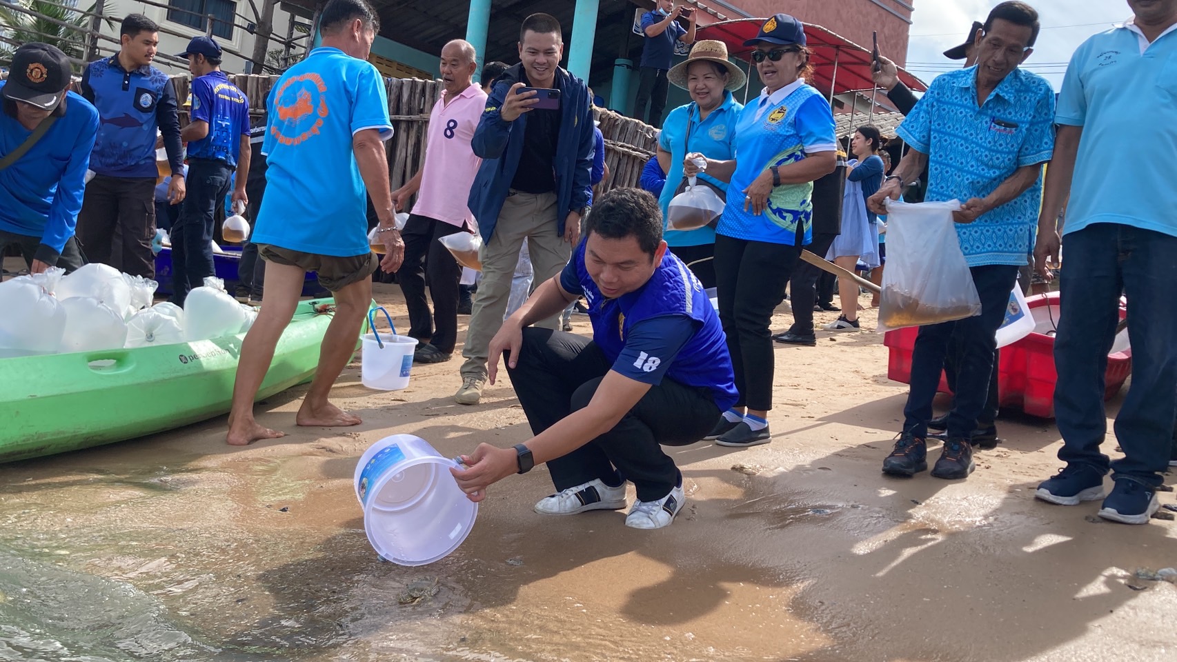 วันที่ 8 ส.ค.67 นายพรชัย สังข์เอียด ปลัดอำเภอบางละมุง ผู้แทนนายอำเภอบางละมุง เป็นประธานกิจกรรมปล่อยพันธุ์สัตว์น้ำ ครั้งที่ 1 ประจำปี พ.ศ. 2567 เนื่องในโอกาสวันเฉลิมพระชนมพรรษา 92 พรรษา สมเด็จพระนางเจ้าสิริกิติ์ พระบรมราชินีนาถ พระบรมราชชนนีพันปีหลวง ซึ่งจัดขึ้นบริเวณริมทะเล ที่ทำการกลุ่มประมงเทศบาลตำบลบางละมุง จ.ชลบุรี โดยมี ว่าที่ร้อยตรี จเรวัฒน์ ชินวัฒน์ นายกเทศมนตรีเทศบาลตำบลบางละมุง และแขกผู้มีเกียรติเข้าร่วม