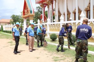 ในช่วงบ่าย เป็นการร่วมกันทำกิจกรรมจิตอาสาพัฒนา บำเพ็ญสาธารณประโยชน์ ของหน่วยต่าง ๆ ในพื้นที่สัตหีบ จำนวน 250 คน ณ วัดบางเสร่คงคาราม ตำบลบางเสร่ อำเภอสัตหีบ จังหวัดชลบุรี โดยมี พลเรือตรี กรัณย์ กลิ่นบัวแก้ว รองผู้บัญชาการทัพเรือภาคที่ 1 พร้อมผู้บังคับบัญชาของทัพเรือภาคที่ 1 และผู้แทนหน่วยต่าง ๆ ในพื้นที่สัตหีบ ตรวจเยี่ยมการปฏิบัติกิจกรรม ซึ่งกิจกรรมในครั้งนี้ประกอบด้วย การทำความสะอาดโดยรอบอุโบสถ ตัดหญ้า ตกแต่งกิ่งไม้และต้นไม้ เก็บกวาดขยะโดยรอบวัด และล้างห้องน้ำ