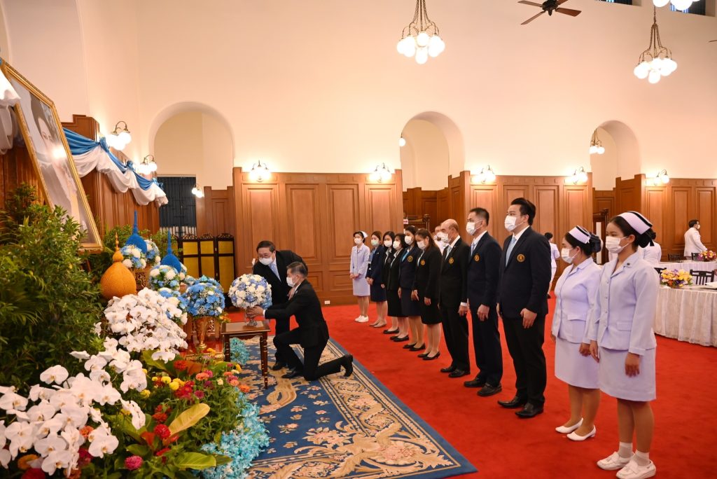 นำแจกันดอกไม้ทูลเกล้าทูลกระหม่อมถวายเบื้องหน้าพระฉายาลักษณ์ สมเด็จพระนางเจ้าสิริกิติ์ พระบรมราชินีนาถ พระบรมราชชนนีพันปีหลวง และลงนามถวายพระพรชัยมงคล เนื่องในโอกาสวันเฉลิมพระชนมพรรษา วันที่ 12 สิงหาคม2567 ณ ศาลาสหทัยสมาคม ในพระบรมมหาราชวัง กรุงเทพฯ