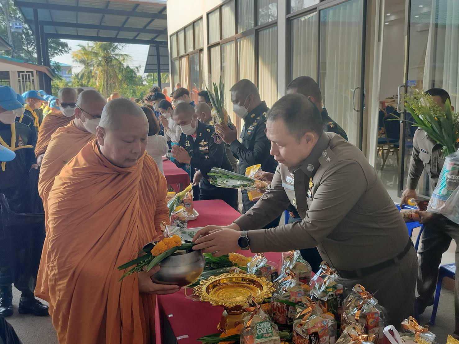 เมื่อเวลา 07.30 น.วันที่ 3 มิ.ย.66 ที่โดมวัดสมานรัตนาราม อ.เมืองฉะเชิงเทรา นายณัฐพงษ์ สงวนจิตร รองผวจ.ฉะเชิงเทรา เป็นประธานฝ่ายฆราวาส ท่านเจ้าคุณพระประชาธรรมนาท เจ้าคณะจังหวัดฉะเชิงเทรา(ธรรมยุต)เจ้าอาวาสวัดสมานรัตนาราม ประธานฝ่ายสงฆ์ พร้อมด้วย นางสายภิญย์ สิชฌนุกฤษฏ์ ผอ.สำนักงานพระพุทธศาสนาจังหวัดฉะเชิงเทรา หัวหน้าส่วนราชการ ผู้ใหญ่กฤษดา มหาวิริโยทัยผู้ใหญ่บ้านหมู่ 12 ตำบลบางแก้ว อบต.สายันต์ ฉัตรมงคล อบต.หมู่ 9 บางแก้วพุทธศาสนิกชน และ ชาวจ.ฉะเชิงเทรา พาครอบครัวร่วมทำบุญตักบาตร และร่วมทำบุญตักบาตร ข้าวสารอาหารแห้ง น้ำดื่ม แด่พระภิกษุสงฆ์เนื่องในวันวิสาขบูชาประจำปี 2566