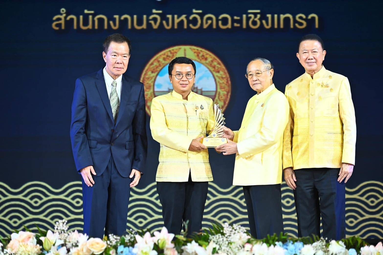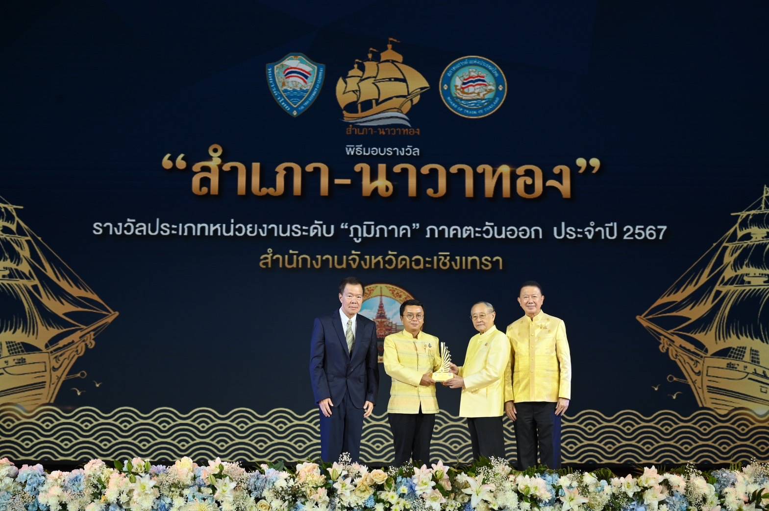 โดยสำนักงานจังหวัดฉะเชิงเทรา ได้รับการพิจารณารับรางวัล “สำเภา-นาวาทอง” ประจำปี 2567 ได้รับเกียรติจาก ดร.สุเมธ ตันติเวชกุล กรรมการและเลขาธิการ มูลนิธิชัยพัฒนา เป็นประธานในพิธี เป็นผู้มอบรางวัลแก่ นายสาครินทร์ จำปา หัวหน้าสำนักงานจังหวัดฉะเชิงเทรา โดยมีนายสนั่น อังอุบลกุล ประธานกรรมการ หอการค้าไทยและสภาหอการค้าแห่งประเทศไทย ดร.กฤษณะ วจีไกรลาศ กรรมการเลขาธิการหอการค้าไทย ดร.จิตรกร เผด็จศึก ประธานหอการค้าจังหวัดฉะเชิงเทรา ประธานหอการค้ากลุ่มจังหวัดภาคตะวันออก 1 กรรมการหอการค้าไทย ร่วมแสดงความยินดี ณ ห้องประชุมมหาวิทยาลัยหอการค้าไทย