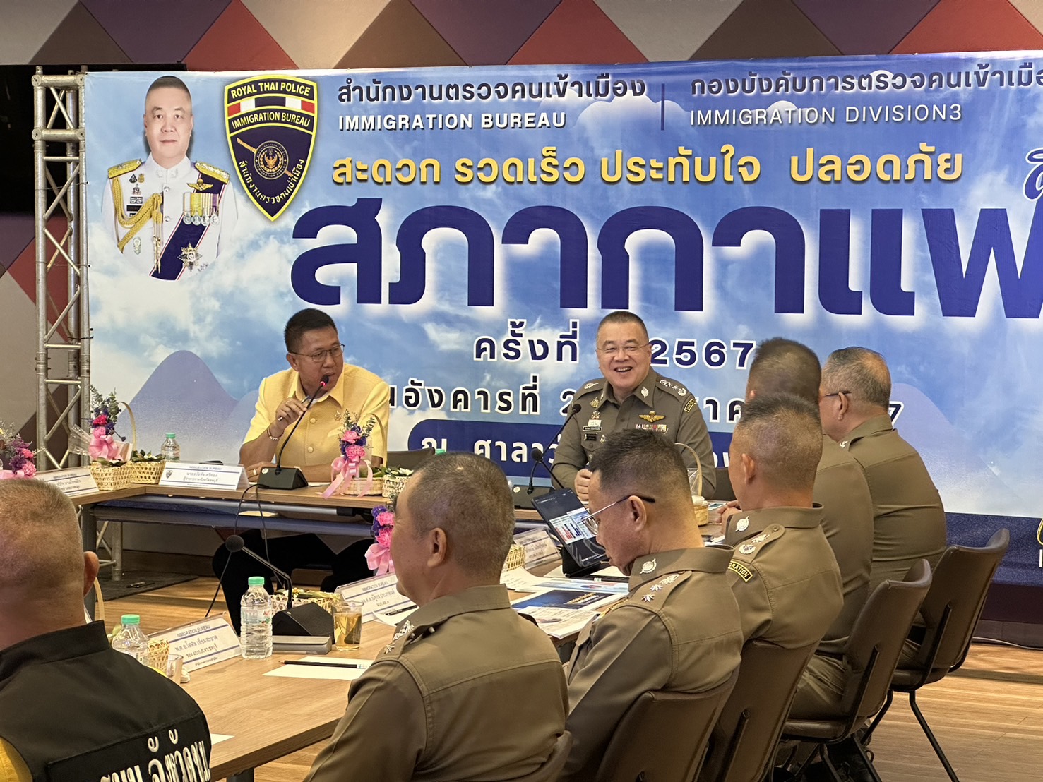 โดยมี นายธวัชชัย ศรีทอง ผู้ว่าราชการจังหวัดชลบุรี นายปรเมศวร์ งามพิเชษฐ์ นายกเมืองพัทยา นายวีกิจ มานะโรจน์กิจ นายอำเภอบางละมุงพล.ต.ท.ชูฉัตร ธารีฉัตร ผทค.พิเศษ ตร.รรท.รอง ผบช.สตม. พล.ต.ต.ณัฐกร ประภายนต์ ผบก.ตม.3 และตัวแทนภาคเอกชน และส่วนราชการในพื้นที่เข้าร่วม
