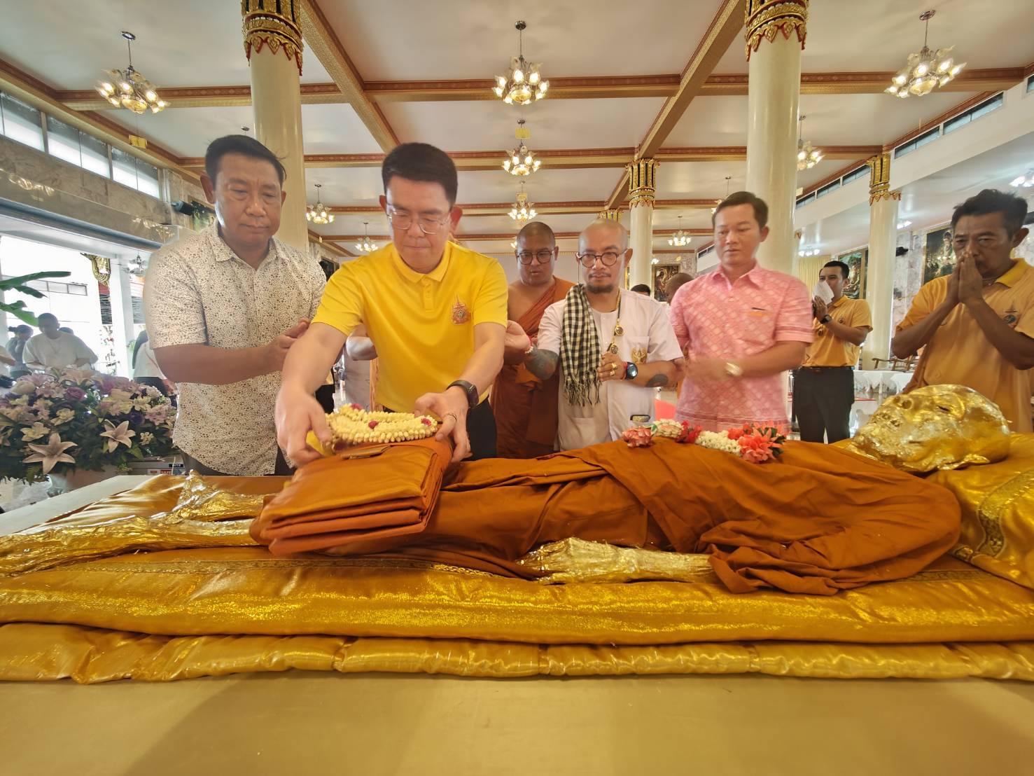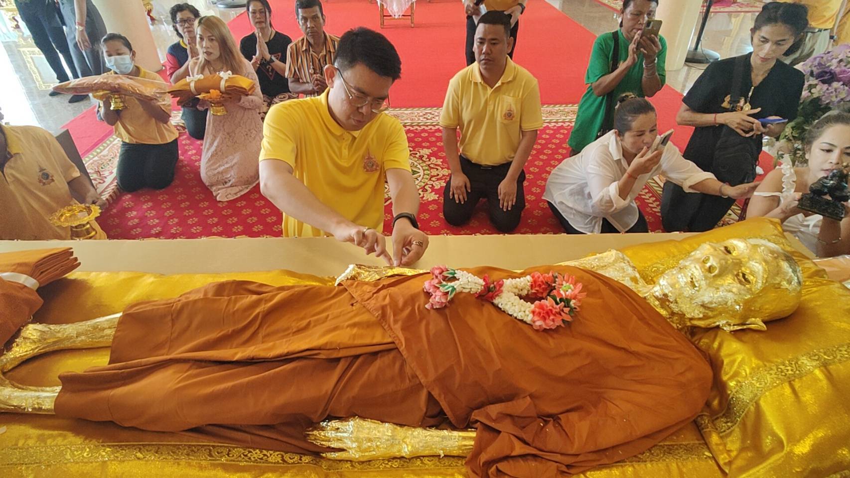 โดยมีนายนพรัตน์ ศรีพรหม นายอำเภอศรีราชามาเป็นประธานฝ่ายฆราวาส นำปิดทองสังขารหลวงพ่อทองซึ่งมีประชาชนจำนวนมากมาร่วมปิดทองและสักการะสังขารหลวงพ่อทองในครั้งนี้โดยที่ผู้มาร่วมงานในครั้งนี้หลวงพ่อน้ำหอมได้แจกของที่ระลึกแก่ทุกท่านและในช่วงกลางคืนทางวัดจัดพิธีบำเพ็ญกุศลสวดพระอภิธรรม อุทิศถวายพระครูสุทธิคุณรังษี (หลวงพ่อทอง ปญฺญาทีโป) ในคืนวันที่ 22-24 สิงหาคม 2567 ในเวลา 19.00 น. (จำนวน 3 คืน) และในเวลา10.00น.ในวันที่25 สิงหาคม2567 ทางลูกศิษย์ได้จัดงานวันมรณกาลครบ 9 ปี สิริอายุรวม 103 ปี โดยทำพิธีบำเพ็ญกุศลอุทิศถวายหลวงพ่อทอง ที่บนศาลาสุทธิคุณรังษีที่ตั้งสรีระสังขารของหลวงปู่ทอง