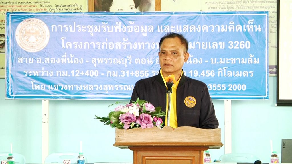 ที่จังหวัดสุพรรณบุรี วันที่ 21 ส.ค.2567 แขวงทางหลวงสุพรรณบุรีที่2 (อู่ทอง) จัดเวทีประชาสัมพันธ์และรับฟังความคิดเห็นประชาชน โครงการก่อสร้างทางหลวง หมายเลข 3260 สาย อ.สองพี่น้อง – สุพรรณบุรี ตอน อ.สองพี่น้อง – บ.มะขามล้ม ระหว่าง กม.12+400.000 กม.31+856.000 ระยะทาง 19.456 กิโลเมตร ณ ศาลารวมใจ บ้านโคกโก ตำบลมะขามล้ม เพื่อรับฟังความคิดเห็นและข้อเสนอแนะที่มีต่อโครงการโดยมีนายประทีป การมิตรี รองผู้ว่าราชการจังหวัดสุพรรณบุรี เป็นประธานกล่าวเปิด นายสุเทพ คงประสาท ผอ.แขวงทางหลวงสุพรรณบุรี2(อู่ทอง) กล่าวรายงานวัตถุประสงค์ มีนายพยูร เทียนทอง นายช่างโครงการ นายสมิทธ์ อักขิโสภา วิศวกรโยธาชำนาญการ พร้อมเจ้าหน้าที่ นายเอกภพ จันทร์เพ็ญ ผอ.ศูนย์ป้องกันและบรรเทาสาธารณภัยเขต 2 สุพรรณบุรี นายวีระ หวลบุดตา นายก อบต.มะขามล้ม ผู้นำท้องถิ่น และประชาชนในพื้นที่ ตำบลมะขามล้ม ตำบลวัดโบสถ์ อำเภอบางปลาม้า ตำบลบางพลับ อำเภอสองพี่น้อง เข้าร่วมรับฟัง ให้ข้อมูลและข้อเสนอแนะ นายสุเทพ คงประสาท ผอ.แขวงทางหลวงสุพรรณบุรี2(อู่ทอง) กล่าวว่าจากการเจริญเติบโทของเศรษฐกิจและสังคม ทำให้มีการขยายตัวของชุมชนและการคมนาคมมีปริมาณจราจรที่สูงขึ้นทำให้ผู้ใช้เส้นทางไม่ได้รับความสะดวกและปลอดภัยในการสัญจรเดินทาง กรมทางหลวงจึงได้ขอรับการจัดสรรงบประมาณมาดำเนินโครงการนี้เพื่ออำนวยความสะดวกและปลอดภัย และสนับสนุนการขยายตัวทางเศรษฐกิจและสังคมของตำบลบางพลับ อำเภอสองพี่น้อง ตำบลวัดโบสถ์ ตำบลมะขามล้ม อำเภอบางปลาม้า และการเจริญเติบโตโดยรวม วันนี้เป็นการเปิดเวทีประชาสัมพันธ์ชี้แจงรายละเอียดรูปแบบโครงการพร้อมรับฟังความคิดเห็นข้อเสนอแนะจากประชาชนที่เข้าร่วมประชุมเพื่อนำข้อสรุปที่ได้มาพิจารณาปรับปรุงโครงการให้มีประสิทธิภาพสอดคล้องกับความต้องการของพื้นที่ เพื่อให้เป็นไปตามหลักเกณฑ์วิธีการบริหารกิจการบ้านเมืองที่ดีในหลักการมีส่วนร่วมของประชาชนผู้มีส่วนได้ส่วนเสีย