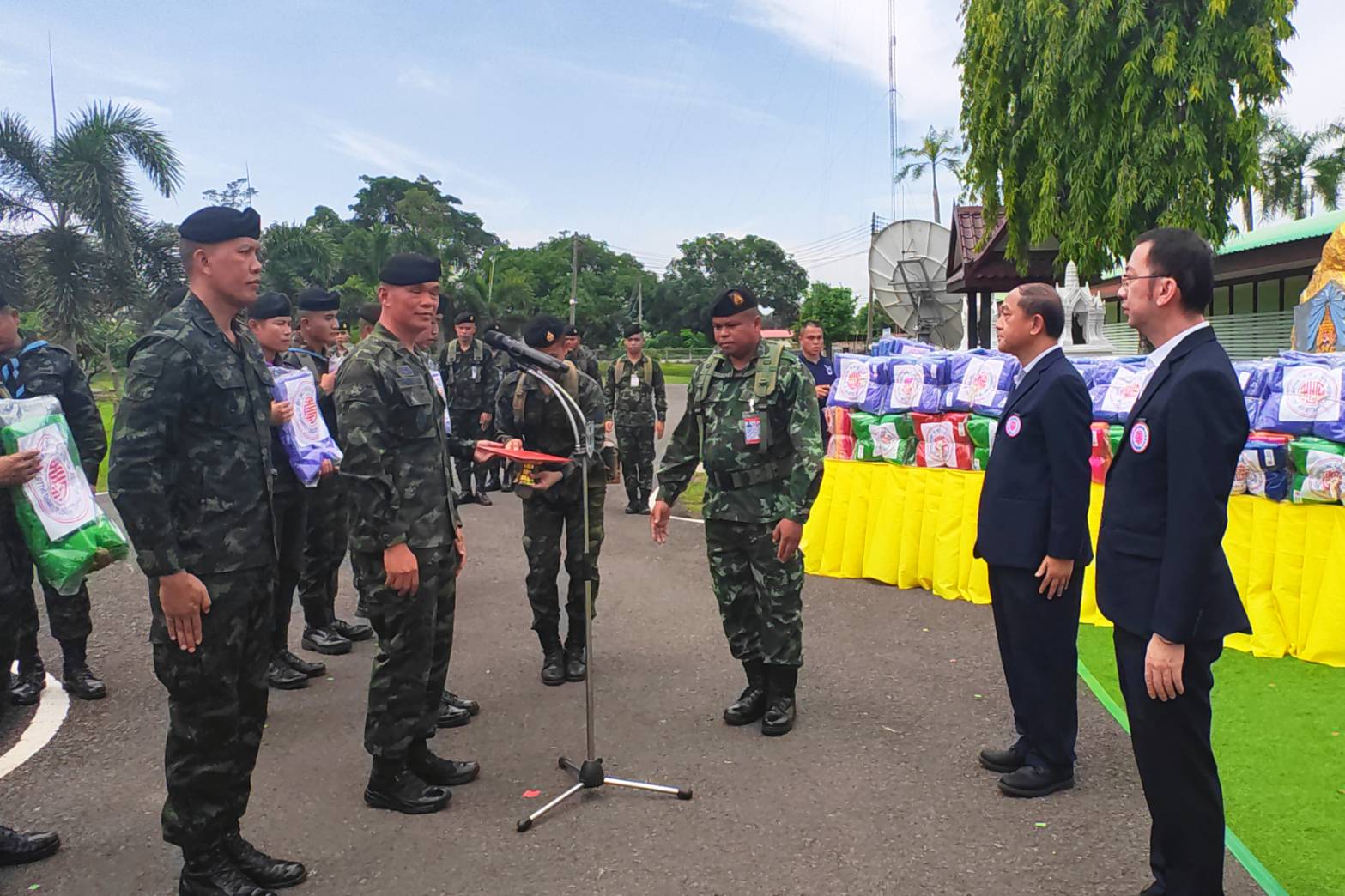 เมื่อวันที่ 26 สิงหาคม 2567 ที่กองบัญชาการกองกำลังสุรนารี อำเภอเมืองสุรินทร์ จังหวัดสุรินทร์ พันเอก พิทักษ์ชัย กิ่งเกษ รองเสธนาธิการ กองกำลังสุรนารี ผู้แทนผู้บัญชาการกองกำลังสุรนารี เป็นตัวแทนรับมอบผ้าห่มกันหนาว จำนวน 3,500 ผืน จากมูลนิธิไกรสิทธิการกุศล และคณะ ที่มอบให้กับกองกำลังสุรนารี เพื่อนำไปส่งมอบให้กับประชาชนตามแนวชายแดน ที่ได้รับผลกระทบจากภัยหนาว ซึ่งมูลนิธิไกรสิทธิการกุศล เป็นมูลนิธิที่ช่วยเหลือสังคม บรรเทาทุกข์ในยามเกิดพิบัติภัย และได้รับความนิยมจากสังคมในหมู่ชาวจีนเป็นอย่างมาก ปัจจุบัน มีนายวิสิทธิ์ ลีละศิธร เป็นประธานมูลนิธิฯ โดยที่ผ่านมา ได้ส่งมอบผ้าห่มกันหนาวให้กับกองกำลังสุรนารีเป็นประจำทุกปี เพื่อช่วยเหลือและบรรเทาความเดือดร้อน ให้กับผู้ประสบภัยหนาวในพื้นที่ชายแดน