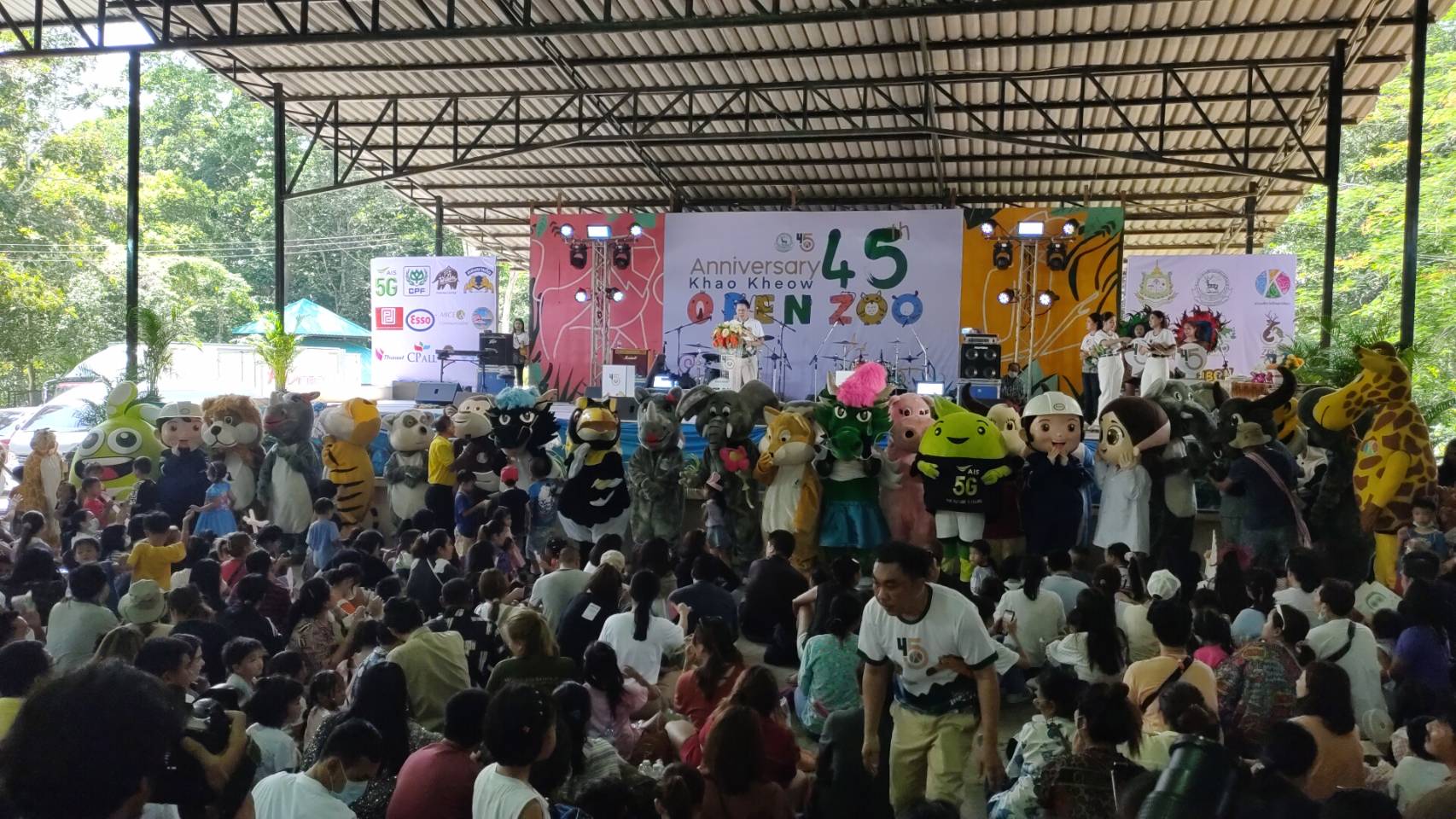 วันนี้ (3 มิ.ย.) นายธวัชชัย ศรีทอง ผู้ว่าราชการจังหวัดชลบุรี เป็นประธานเปิดงาน “ครบรอบ 45 ปีสวนสัตว์เปิดเขาเขียว”พร้อมด้วย ผู้บริหารสวนสัตว์เปิดเขาเขียว และหน่วยงานต่างๆ ร่วมฉลองครบรอบ 45 ปี ซึ่งจัดขึ้นระหว่างวันที่ 3-5 มิถุนายน นี้ โดยมีการเปิดตัวมาสคอตตัวแทนสวนสัตว์เปิดเขาเขียว นอกจากนั้น ยังมีนิทรรศการย้อนวันวาน 45 ปี และผลงานต่างๆ ภายในงานจัดกิจกรรมต่างๆ มากมาย อาทิ คอนเสิร์ตขวัญใจวัยรุ่นฟันน้ำนม “Paper Planes” เจ้าของเพลงฮิต “ทรงอย่างแบด” ศิลปินดาราละครช่อง 7 , ชมนิทรรศการย้อนวันวาน 45 ปีสวนสัตว์เปิดเขาเขียว, กิจกรรม Charity rally for 45th Anniversary of Khao Kheow Zoo การกุศล เพื่อเด็กด้อยโอกาส, มหกรรมพาเหรดมาสคอตทั่วประเทศ, ศิลปะ จากเศษเหล็ก Metal Art Gallery, โชว์งูสวยงาม จากบ้านงูยิ้ม, งานออกบูธแหล่งท่องเที่ยวของจังหวัดชลบุรี, การประกวดต้นไม้ “ต้นโชคเก้าชั้น” และการจำหน่ายสินค้า OTOP ของดีจังหวัดชลบุรี