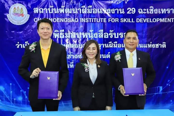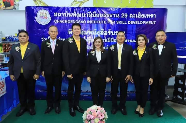 ซึ่งเป็นบริษัทในเครือบริษัท พีทีจี เอ็นเนอยี จำกัด (มหาชน) จำนวน 40 คน โดยมีนางสาวบุปผา เรืองสุด อธิบดีกรมพัฒนาฝีมือแรงงาน เป็นประธานมอบ พร้อมทั้ง ร่วมเป็นสักขีพยานการลงนามบันทึกข้อตกลง (MOU) ระหว่างบริษัท สยามออโต้แบคส์ จำกัด โดยนายวิศรุต โลจนานนท์ กรรมการผู้จัดการบริษัทฯ กับ สถาบันพัฒนาฝีมือแรงงาน 29 ฉะเชิงเทรา โดยนายนพดล น้อยอุทัย ผู้อำนวยการสถาบันฯ เพื่อร่วมกันพัฒนาศักยภาพกำลังแรงงานและรับผู้ผ่านการฝึกอบรมหลักสูตรการฝึกเตรียมเข้าทำงานเข้าฝึกในกิจการและรับเข้าทำงานเมื่อจบการฝึก