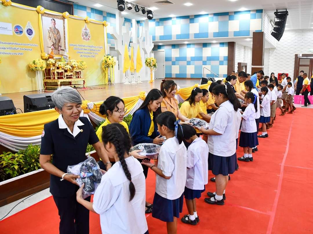 กาชาดชลบุรีจัดโครงการกาชาดปันน้ำใจมอบชุดนักเรียนและรองเท้านักเรียนให้แก่เด็กนักเรียนผู้ยากไร้ในพื้นที่จังหวัดชลบุรี ประจำปีงบประมาณ 2567เฉลิมพระเกียรติพระบาทสมเด็จพระเจ้าอยู่หัว เนื่องในโอกาสพระราชพิธีมหามงคลเฉลิมพระชนมพรรษา 6รอบ28กรกฎาคม 2567