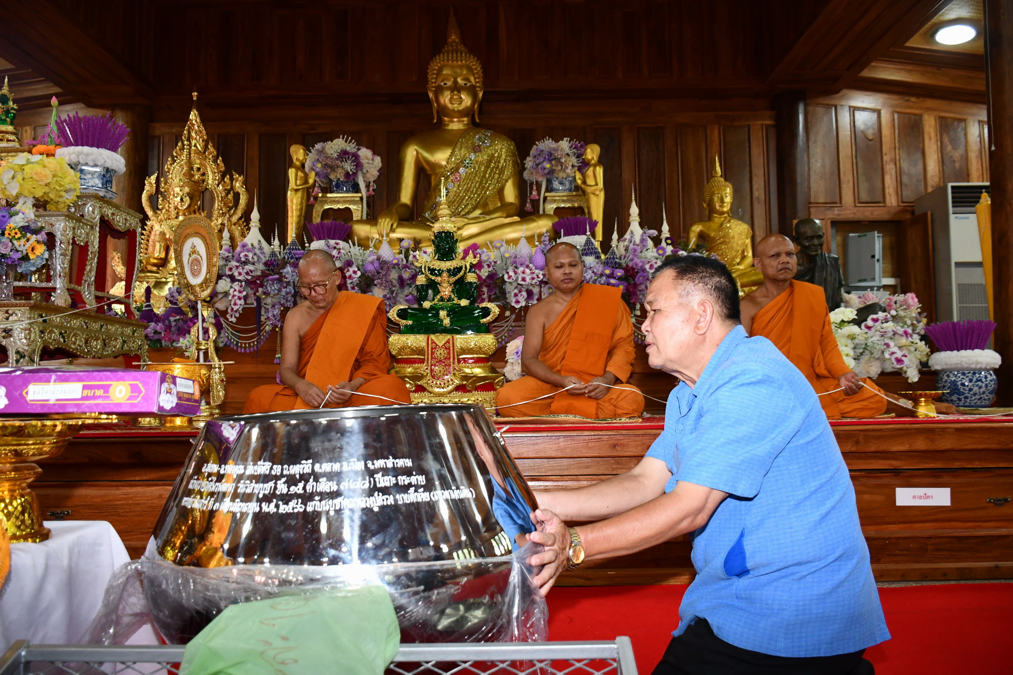 เมื่อวันที่ 3 มิ.ย. 2566 ผู้สื่อข่าวรายงานว่า ที่ศาลาทม วัดไพรพัฒนา ต.ไพรพัฒนา อ.ภูสิงห์ จ.ศรีสะเกษ อาจารย์สุเทพและอาจารย์ทองคูณ สมบัติศิริ 2 สามีภรรยา ข้าราชการครูเกษียณอายุราชการแล้ว เป็นชาว อ.เมือง จ.มหาสารคาม พร้อมด้วยครอบครัว ได้นำเอาเงินสด จำนวน 100,000 บาท พระแก้วมรกตจำลอง ขนาด 12 นิ้ว จำนวน 1 องค์ หนังสือธรรมะ 50 เล่ม บาตรสแตนเลส ขนาด 20 นิ้ว ผ้าไตร 1 ไตร เงินถวายพระเณร จำนวน 8,500 บาท ผ้าเช็ดหน้า 22 ผืน ไฟฉาย 21 กระบอก รูปภาพหลวงปู่สรวงขนาดใหญ่ เขียนคำว่า แก้บน บูชาคุณหลวงปู่สรวง เทวดาเดินดิน ผู้วิเศษแห่งภูตะแบง เทพเจ้าแห่งอาณาจักรขอม และสิ่งของต่าง ๆ จำนวนมาก รวมมูลค่าเป็นเงินทั้งสิ้น 146,489 บาท นำไปถวายแด่ พระครูโกศลสิกขกิจ หรือหลวงพ่อพุฒ วายาโม ประธานมูลนิธิหลวงปู่สรวงวัดไพรพัฒนา เจ้าคณะ อ.ภูสิงห์ (ธ.) และเจ้าอาวาสวัดไพรพัฒนา ศิษย์เอกของหลวงปู่สรวง พระผู้ปฏิบัติดีปฏิบัติชอบและเป็นพระผู้มีความกตัญญูเป็นเลิศ โดยมีการนิมนต์พระภิกษุสงฆ์สามเณรทั้งวัดไพรพัฒนามาประกอบพิธีทางศาสนาเพื่อความเป็นสิริมงคล ซึ่งอาจารย์สุเทพและอาจารย์ทองคูณ สมบัติศิริ 2 สามีภรรยา ได้ถวายเงินสดและสิ่งของแด่พระครูโกศลสิกขกิจและถวายจตุปัจจัยไทยธรรมแด่พระสงฆ์สามเณรทุกรูป จากนั้น ได้มีการประกอบพิธีบายศรีสู่ขวัญให้กับนายประมวล เสนคราม อดีตแพทย์ประจำตำบลไพรพัฒนา ซึ่งครบเกษียณอายุราชการแล้วทั้งนี้เพื่อความเป็นสิริมงคล มีการนำเอาฝ้ายมาผูกแขนให้กับอาจารย์สุเทพและอาจารย์ทองคูณ สมบัติศิริ และนายประมวล และเพื่อเป็นขวัญกำลังใจตามประเพณีอีสานด้วย โดยมี นายสำเร็จ ไพรบึง นายก อบต.ไพรพัฒนา พร้อมด้วย คณะกรรมการวัดไพรพัฒนา และชาวบ้านไพรพัฒนา มาร่วมพิธีในครั้งนี้