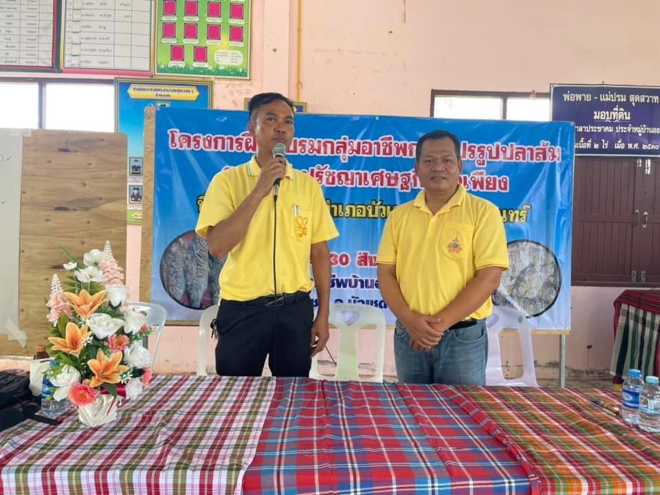 วันที่ 30 สิงหาคม 2567 เวลา 09.00 น. นายสุรชัย สุนุรัตน์ ปลัดอำเภอบัวเชด เป็นประธานเปิดโครงการฝึกอบรมกลุ่มอาชีพแปรรูปปลาส้ม ตามหลักปรัชญาเศรษฐกิจพอเพียง ที่ศาลาประชาคม บ้านออด หมู่ 11 ต.บัวเชด อ.บัวเชด จ.สุรินทร์ โครงการดังกล่าวนี้เพื่อน้อมนำแนวพระราชดำริและหลักเศรษฐกิจพอเพียงไปใช้เป็นหลักในการพัฒนา สร้างงาน สร้างอาชีพ เพื่อเพิ่มรายได้ และแก้ไขปัญหาความเดือดร้อนของประชาชนในพื้นที่ ให้มีความสามารถพึ่งพาตนเองได้อย่างยั่งยืน โดยผ่านกระบวนการสร้างสัมมาชีพในชุมชนด้วยการฝึกอบรมอาชีพให้กับครัวเรือนที่เข้ารับการฝึกอบรมให้มีความรู้และสามารถนำไปประกอบอาชีพได้จริงๆ อย่างมั่นคง ซึ่งจะเป็นต้นแบบการสร้างกลุ่มอาชีพแปรรูปอาหารในหมู่บ้าน ร่วมทั้งการมีผลิตภัณฑ์ชุมชนที่มีการลงทะเบียนเป็นสินค้า OTOP ต่อไป