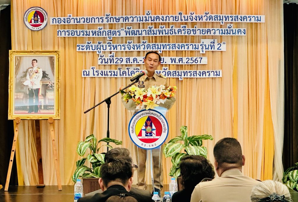สมุทรสงคราม กอ.รมน.จัดอบรมหลักสูตรพัฒนาสัมพันธ์เครือข่ายความมั่นคงระดับผู้บริหาร (พคบ.) รุ่นที่ 2 มีผู้บริหารองค์กรภาครัฐ เอกชน และภาคประชาชน ร่วมเป็นเครือข่ายความมั่นคงของจังหวัด จำนวน 60 คน