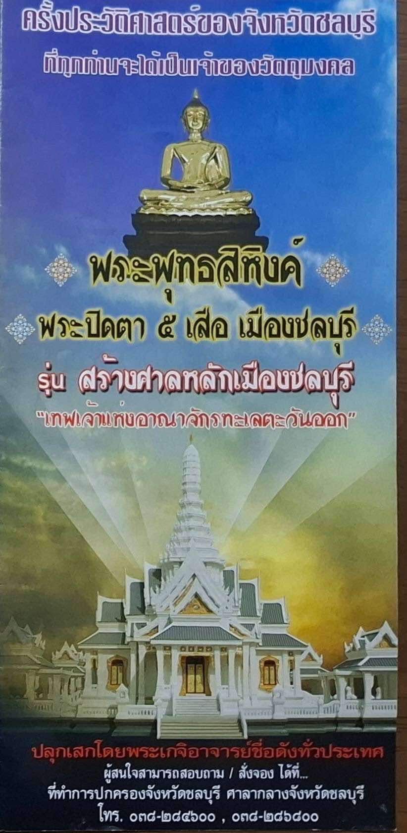 โดยมีนางศุภาวี บำรุงศักดิ์ วัฒนธรรมจังหวัดชลบุรี นางพนิดา จันทวัฒน์ ประชาสัมพันธ์จังหวัดชลบุรี พร้อมด้วย ตัวแทนมูลนิธิศาลหลักเมืองชลบุรี ภาคส่วนที่เกี่ยวข้องร่วมประชุมสืบเนื่องจากจังหวัดชลบุรี มีแนวคิดจะสร้างศาลหลักเมืองชลบุรี จึงได้มีการจัดตั้งมูลนิธิศาลหลักเมืองชลบุรี พร้อมทั้งดำเนินการจัดสร้างวัตถุมงคลพระพุทธสิหิงค์ และพระปิดตา 5 เสือเมืองชลบุรี รุ่นสร้างศาลหลักเมือง จำนวน 12 รายการ และเนื่องจากยังเหลือวัตถุมงคลเหลือจำหน่าย ทางมูลนิธิฯจึงได้นำไปเก็บรักษาไว้ที่ตู้คอนเทนเนอร์ จำนวน 2 ตู้ ซึ่งตั้งอยู่ที่กองบังคับการกองอาสารักษาดินแดน จังหวัดชลบุรี ตั้งแต่เมื่อวันที่ 15 กันยายน 2560
