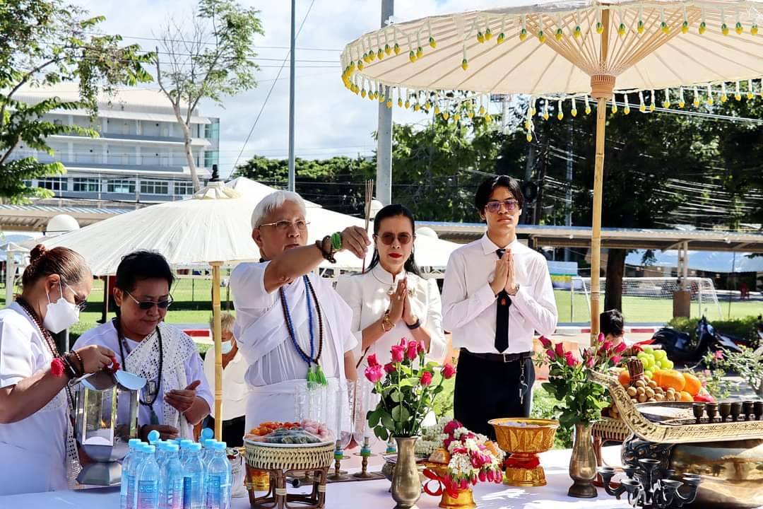 ซึ่งได้รับความเมตตาจาก อาจารย์สกุล เวชชกร อาจารย์ใหญ่ในวิชาการพรหมศาสตร์ พร้อมด้วยคณะครูพราหมณ์ เป็นผู้ดำเนินพิธีกรรม โดยมีคณะผู้บริหาร ครู บุคลากรทางการศึกษา และนักเรียนนักศึกษาเข้าร่วมพิธี ตั้งแต่เวลา 09.09 น.