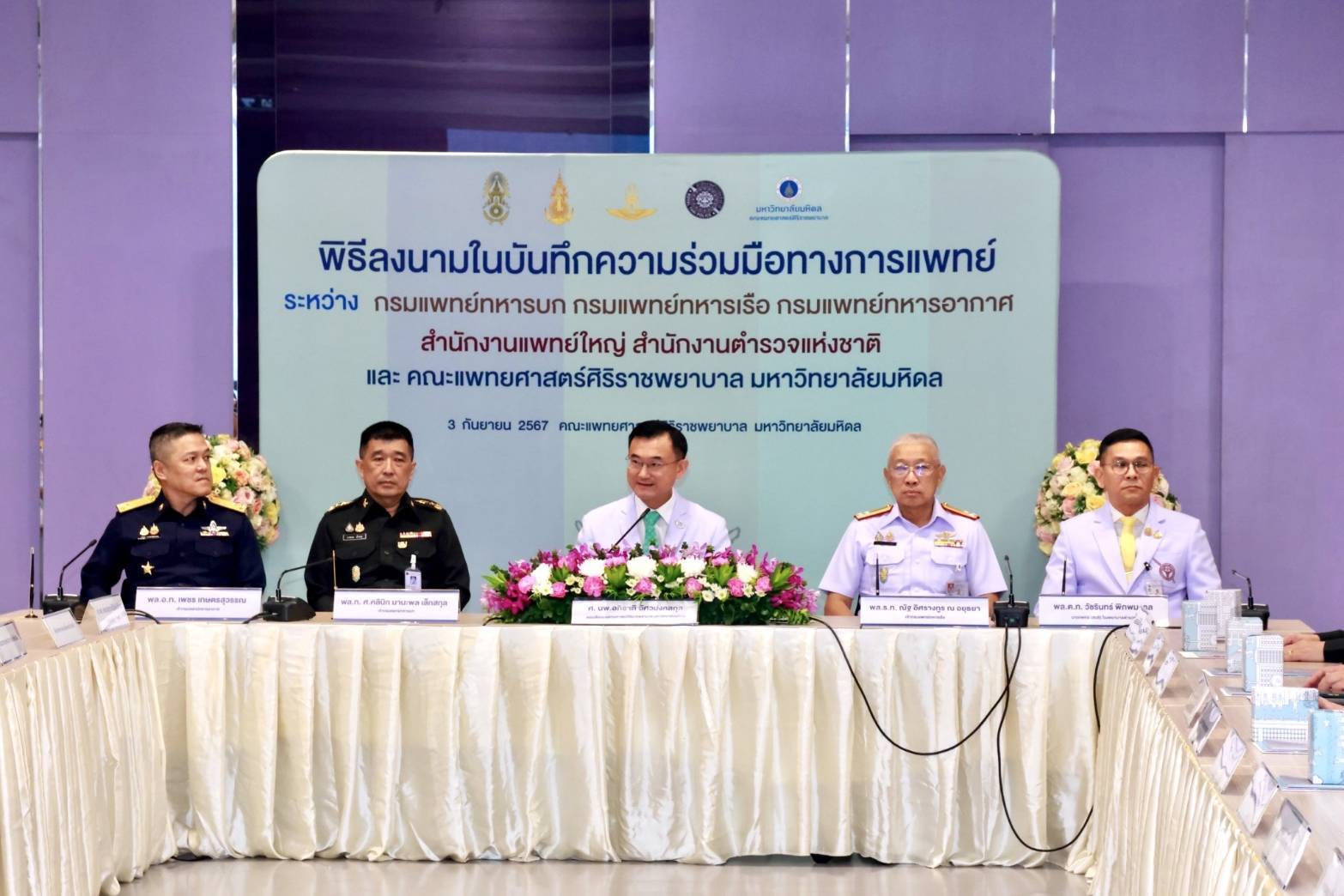 กรมแพทย์ทหารเรือ ลงนาม MOU ทางการแพทย์ฯ กับคณะแพทยศาสตร์ศิริราชพยาบาล ม.มหิดล กรมการแพทย์ทหาร 3 เหล่าทัพ และ สตช. กรมแพทย์ทหารเรือ