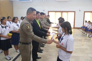 วันนี้ 4 ก.ย.67 ที่หอ หอประชุมวรเวทมุนี โรงเรียนธัมมสิริศึกษาสัตหีบ อ.สัตหีบ จ.ชลบุรี พ.ต.อ. อ.ธนพล กลิ่นเกษร ผกก.สภ.สัตหีบ พร้อมด้วย นาย ภุมรินทร์ สมนวล ผู้อำนวยการโรงเรียนธัมมสิริศึกษาสัตหีบ คณะผู้บริหาร ข้าราชการตำรวจ ร่วมมอบใบประกาศนียบัตร ให้กับนักเรียนผู้เข้ารับการอบรม ในโครงการ ศึกษาเพื่อต่อต้านการใช้ยาเสพติดและความรุนแรงในเด็กนักเรียน(D.A.R.E.) ประเทศไทย โดยมี นักเรียนผู้เข้ารับการอบรม ระดับชั้นประถมศึกษาปีที่5 จำนวน127 คน เข้ารับใบประกาศนียบัตร