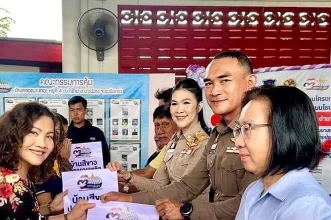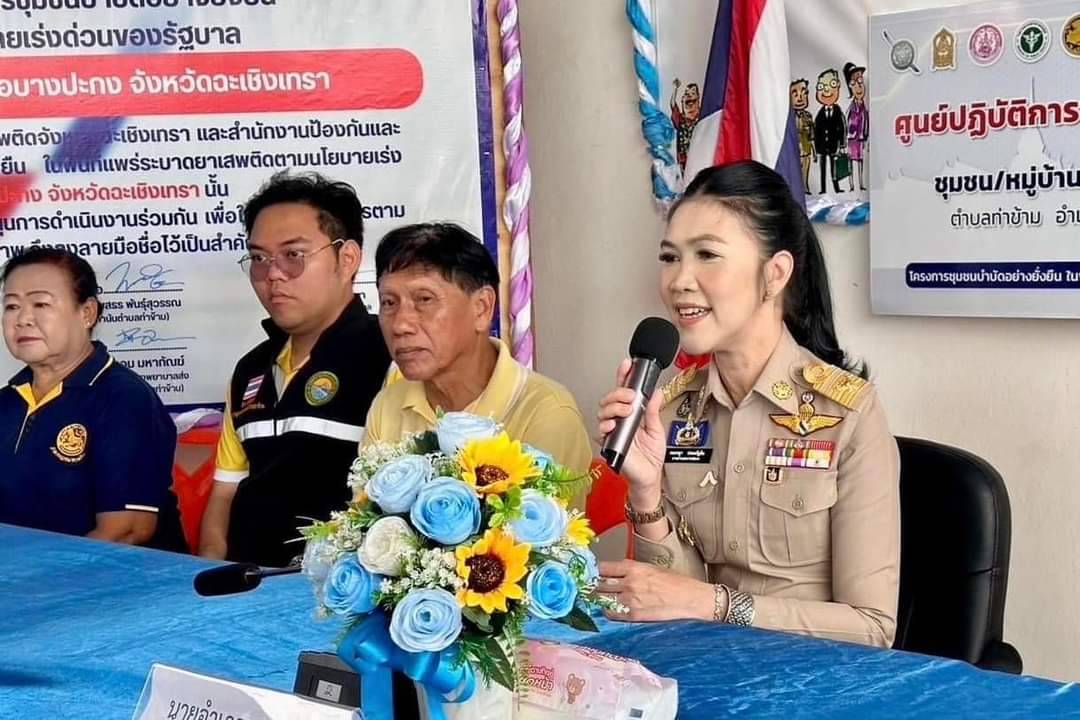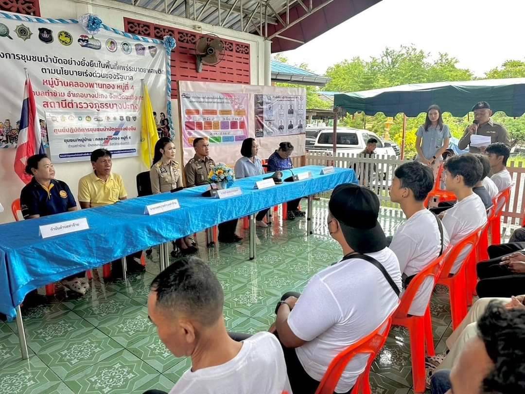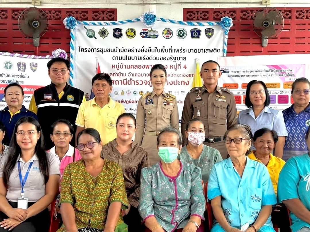 นางสาวกมลชญา ประเสริฐสิน นอภ.บางปะกง เป็นประธาน พร้อมด้วย พ.ต.อ.พงศ์สัณห์ มีศรี ผกก.สภ.บางปะกง ปิดโครงการดำเนินงานชุมชนบำบัดอย่างยั่งยืนในพื้นที่แพร่ระบาดยาเสพติด ตามนโยบายเร่งด่วนของรัฐบาล เพื่อแก้ไขปัญหา การแพร่ระบาดของยาเสพติดในหมู่บ้าน/ชุมชน บูรณาการร่วมกับหน่วยงานที่เกี่ยวข้องเสริมสร้างให้ชุมชนเกิดความเข้มแข็งเข้าใจอย่างยั่งยืน มี สสอ.บางปะกง ปลัด ทต.ท่าข้าม ปลัดอำเภอหัวหน้าฝ่ายความมั่นคง ผอ.รพ.สต.ท่าข้าม กำนัน-ผู้ใหญ่บ้าน ร่วมพิธีดังกล่าว ณ หมู่บ้านคลองพานทอง หมู่ 4 ต.ท่าข้าม อ.บางปะกง จ.ฉะเชิงเทรา