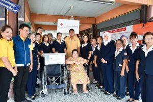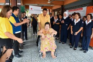 ณ ศาลาประชาคมที่ว่าการอำเภอเมืองชลบุรี ผู้ว่าราชการจังหวัดชลบุรี พร้อมด้วย นายกเหล่ากาชาดจังหวัดชลบุรี และคณะ ได้มอบถุงยังชีพให้แก่ผู้ด้อยโอกาส ผู้ยากไร้ ผู้สูงอายุ ผู้ป่วยติดเตียง และผู้พิการ จำนวน 200 ถุง และมอบรถวีลแชร์และอุปกรณ์ของใช้จำเป็นให้แก่ผู้สูงอายุ ผู้พิการ และผู้ป่วยยากไร้ จำนวน 46 ราย จากนั้น ได้ลงพื้นที่เพื่อพูดคุยให้กำลังใจพร้อมมอบที่นอนลมป้องกันแผลกดทับและอุปกรณ์ของใช้จำเป็นให้แก่ผู้ด้อยโอกาส ผู้สูงอายุ และผู้ป่วย กลุ่มเป้าหมาย จำนวน 2 ราย ดังนี้ นายเอกชัย จันทร์สูง บ้านเลขที่ 98/1 ม.1 ตำบลเสม็ด และนางอุษา โอคุโบะ บ้านเลขที่ 98/10 ม.7 ตำบลห้วยกะปิ โดยมีนายวรจักร สถาพรภิญโญ นายอำเภอเมืองชลบุรี ผู้บริหาร อปท. กำนัน/ผู้ใหญ่บ้าน ให้การต้อนรับคณะและลงพื้นที่ฯหลังจากนั้นเดินทางไปยัง ณ ศาลาประชาคม (หลังเล็ก) ที่ว่าการอำเภอศรีราชา ผู้ว่าราชการจังหวัดชลบุรี พร้อมด้วย นายกเหล่ากาชาดจังหวัดชลบุรี และคณะ ได้มอบถุงยังชีพให้แก่ผู้ด้อยโอกาส ผู้ยากไร้ ผู้สูงอายุ ผู้ป่วยติดเตียง และผู้พิการ จำนวน 200 ถุง และมอบรถวีลแชร์และอุปกรณ์ของใช้จำเป็นให้แก่ผู้สูงอายุ ผู้พิการ และผู้ป่วยยากไร้ จำนวน 33 ราย จากนั้น ได้ลงพื้นที่เพื่อพูดคุยให้กำลังใจพร้อมมอบที่นอนลมป้องกันแผลกดทับ, รถวิลแชร์สิ่งของอุปกรณ์และของใช้จำเป็นให้แก่ผู้ด้อยโอกาส ผู้สูงอายุ และผู้ป่วยกลุ่มเป้าหมาย จำนวน 2 ราย ดังนี้ น.ส.สายหยุด แสงทอง บ้านเลขที่ 9 ซ.สถิตพลจอมพล ต.ศรีราชา และนางสุนทรี ศิริตันหยง บ้านเลขที่ 18/11 ซ.จุลินทร์และมิตร ถ.เจิมจอมพล ต.ศรีราชา โดยมีนายนพรัตน์ ศรีพรหม นายอำเภอศรีราชา ผู้บริหาร อปท. กำนัน/ผู้ใหญ่บ้าน ให้การต้อนรับคณะและร่วมลงพื้นที่ฯภายหลังการลงพื้นที่ ผู้ว่าราชการจังหวัดชลบุรี ได้กล่าวขอบคุณทุกภาคส่วนที่ร่วมมือกันช่วยเหลือบรรเทาความเดือดร้อนและสร้างโอกาสให้แก่ผู้ด้อยโอกาส ผู้ยากไร้ ผู้ป่วย และผู้สูงอายุ ได้มีโอกาสในการพัฒนาและดำรงชีวิตให้ดีขึ้นกว่าเดิม และได้กล่าวเพิ่มเติมว่า หากประชาชนในพื้นที่ต้องการความช่วยเหลือด้านอื่น ๆ ที่มีความจำเป็นเพิ่มเติม สามารถติดต่อขอความช่วยเหลือมาได้ที่สำนักงานเหล่ากาชาดจังหวัดชลบุรีได้ตลอดเวลา โดยจะมีคณะกรรมการเหล่ากาชาดจังหวัดชลบุรี และสมาชิกเหล่ากาชาดอำเภอ จะลงไปให้ความช่วยเหลือโดยทันที