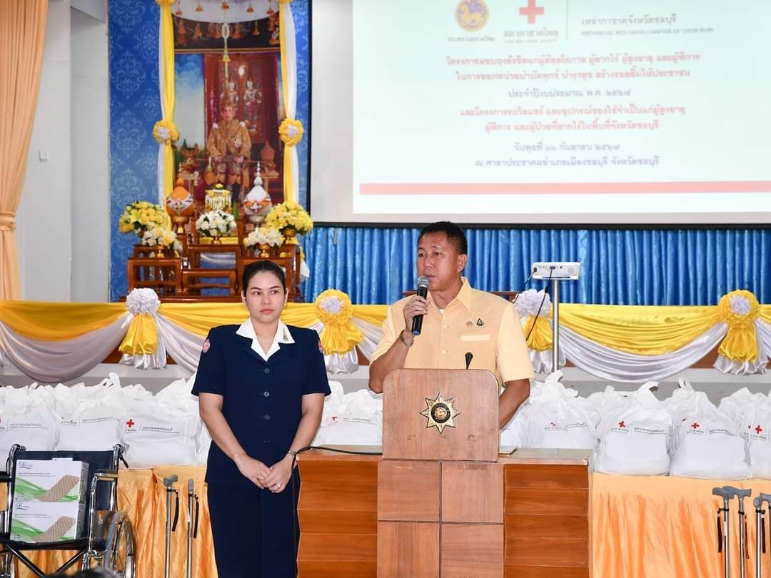 ทอง ผู้ว่าราชการจังหวัดชลบุรี เป็นประธานในพิธีเปิดโครงการหน่วยบำบัดทุกข์ บำรุงสุข สร้างรอยยิ้มให้ประชาชนจังหวัดชลบุรี ประจำปีงบประมาณ พ.ศ.2567 และโครงการรถวีลแชร์และอุปกรณ์ของใช้จำเป็นแก่ผู้สูงอายุ ผู้พิการ และผู้ป่วยที่ยากไร้ในพื้นที่จังหวัดชลบุรี พร้อมมอบอุปกรณ์และสิ่งของจำเป็นในการดำรงชีพให้แก่กลุ่มเป้าหมายในพื้นที่อำเภอเมืองชลบุรีและอำเภอศรีราชา เฉลิมพระเกียรติพระบาทสมเด็จพระเจ้าอยู่หัว พระบรมราชูปถัมภ์ สภากาชาดไทย เนื่องในโอกาสวันเฉลิมพระชนมพรรษาพระบาทสมเด็จพระเจ้าอยู่หัว 6 รอบ28กรกฎาคม 2567 โดยมี น.ส.ประภัสรา ศรีทอง นายกเหล่ากาชาดจังหวัดชลบุรี หัวหน้าส่วนราชการและหน่วยงานที่เกี่ยวข้อง คณะกรรมการเหล่ากาชาดจังหวัดชลบุรี และเจ้าหน้าที่ผู้เกี่ยวข้อง ร่วมกิจกรรมฯ ตามกำหนดการ