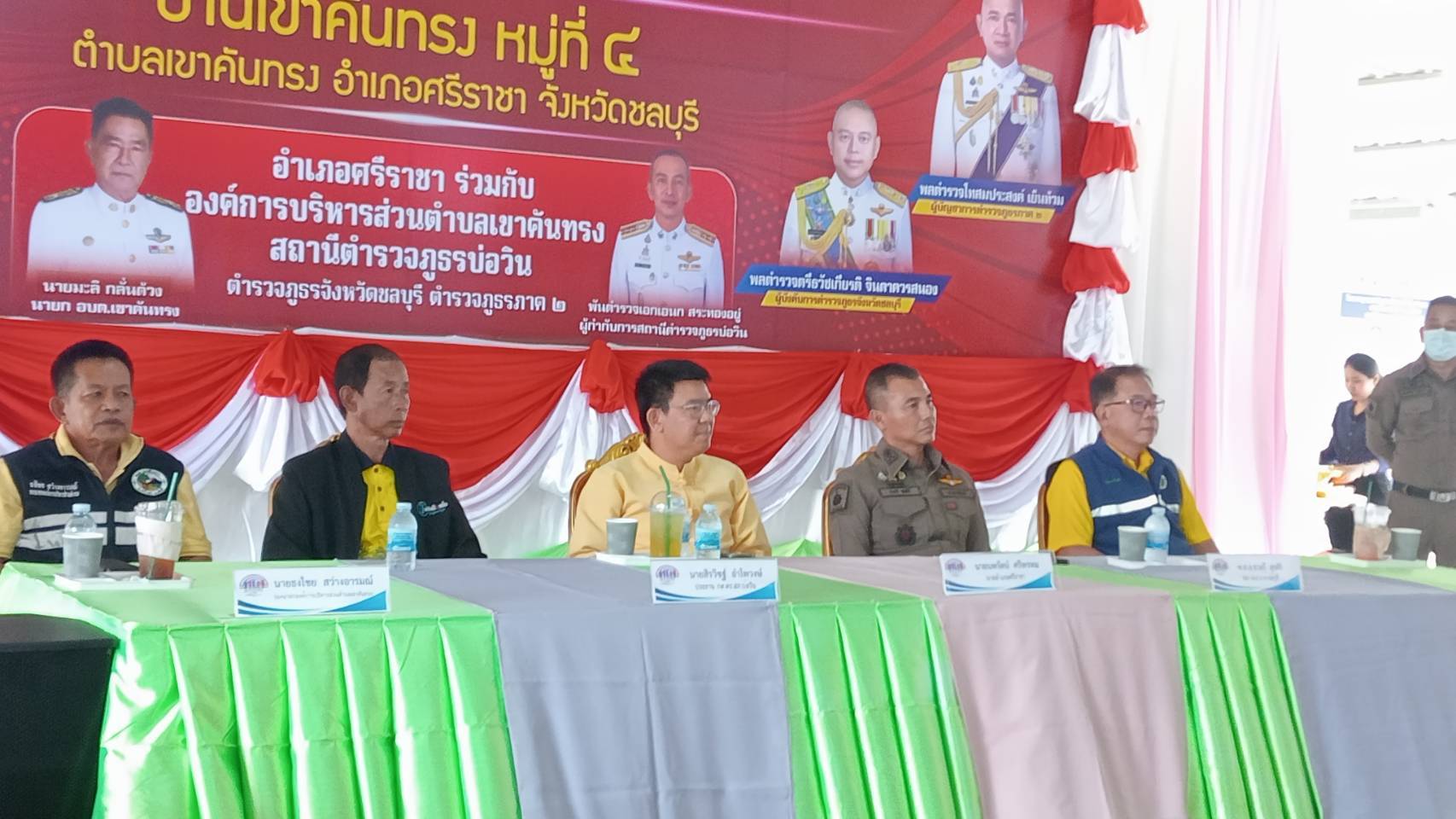 เวลา10.00น. วันที่ 13 กันยายน ที่บริเวณวัดเขาคันทรง ตำบลเขาคันทรง อำเภอศรีราชา จังหวัดชลบุรี นายนพรัตน์ ศรีพรม นายอำเภอศรีราชา พ.ต.อ.ชาตรี สุขศิริ รอง ผบก.ภ.จว.ชลบุรี พ.ต.อ.เอนก สระทองอยู่ ผกก สภ บ่อวิน ร่วมพิธีปิด “ โครงการดำเนินงานชุมชนเข้มแข็ง/ชุมชนยั่งยืน เพื่อแก้ไขปัญหายาเสพติดแบบครบวงจรตามยุทธศาสตร์ชาติ ”