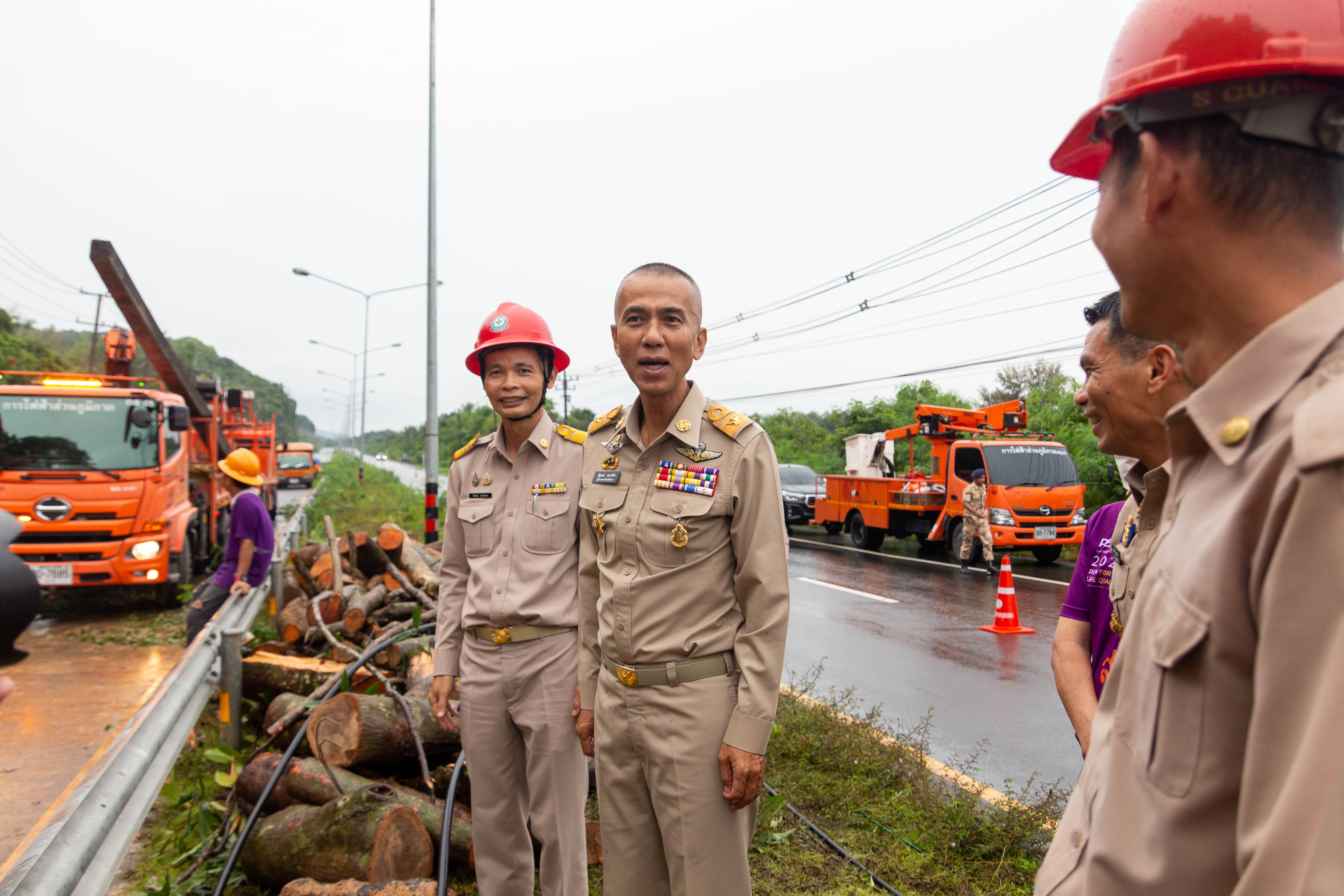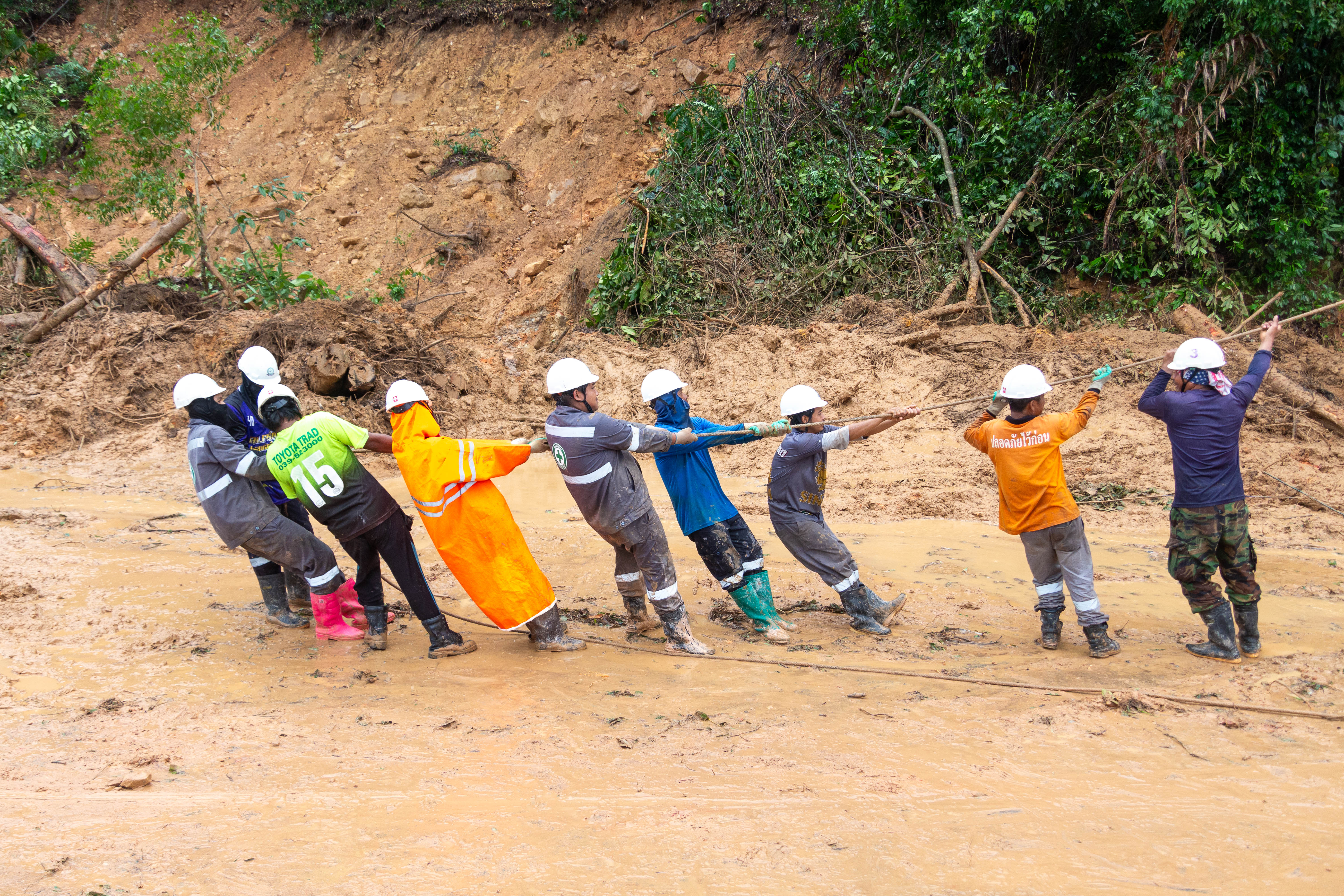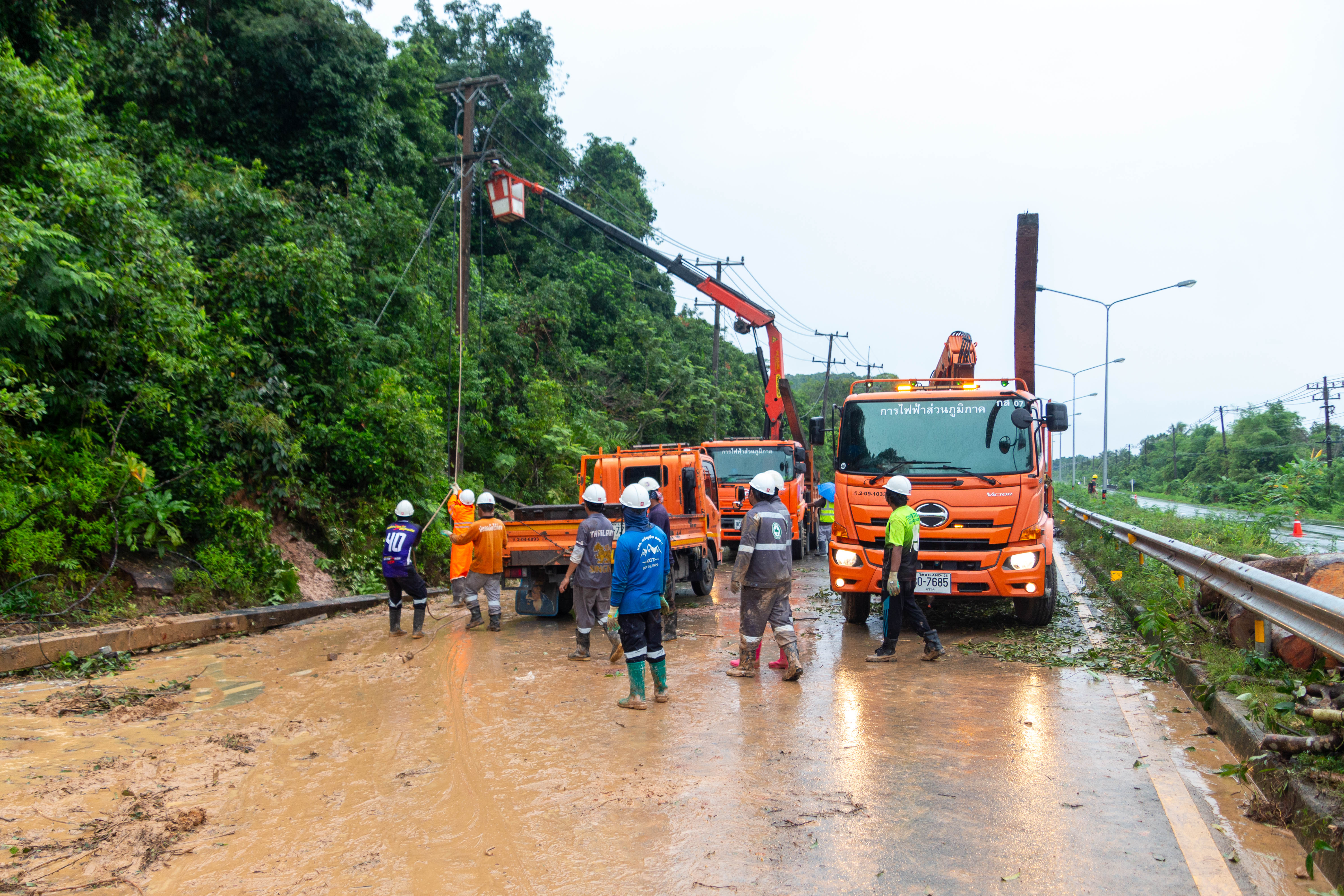 ที่ระดมแก้ไขปัญหาดินสไลด์ทับเส้นทาง บนทางหลวงแผ่นดินหมายเลข 3 (ถนนสุขุมวิท) ช่วงหลักกิโลเมตรที่ 466 + 500 บ้านตาหนึก อำเภอคลองใหญ่ จังหวัดตราด หลังจากที่คืนที่ผ่านมาเกิดฝนตกหนักต่อเนื่องในพื้นที่อำเภอคลองใหญ่ โดยมีปริมาณฝนตลอด 24 ชั่วโมงกว่า 200 มิลลิเมตร ทำให้เกิดปัญหาดินสไลด์ทับเส้นทาง และทำให้ต้นไม้ขนาดใหญ่จำนวนหลานต้นล้มทับสายไฟฟ้า ทำให้เสาไฟฟ้าหักหลายต้น ทำให้ต้องมีการปิดช่องจราจรขาเข้าอำเภอคลองใหญ่แล้วใช้ทางเบี่ยงแทน