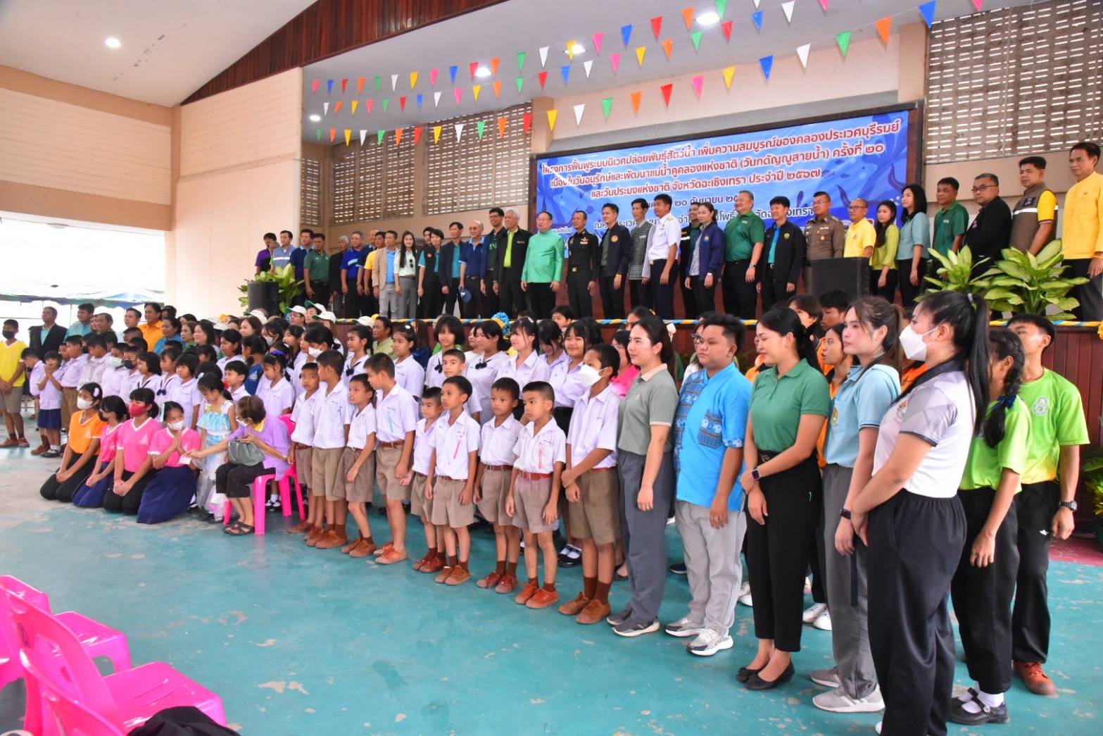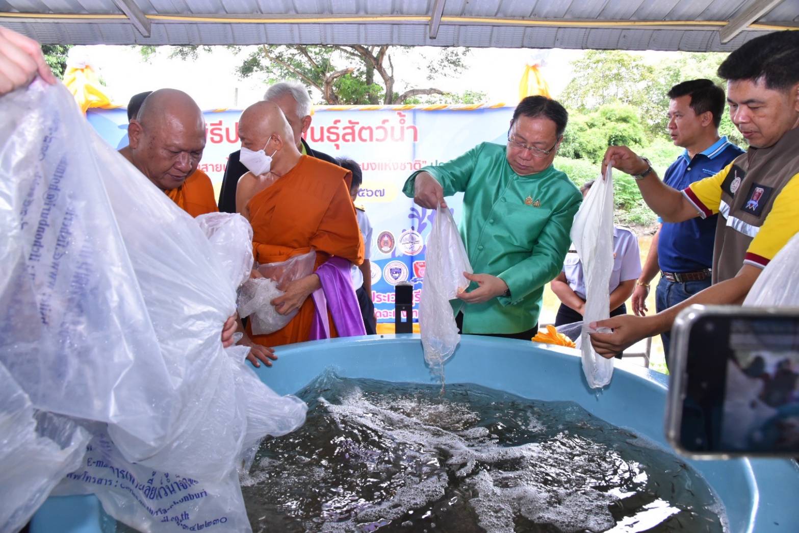 วันที่ 20 ก.ย.67 ที่วัดประเวศวัฒนาราม ตำบลคลองประเวศ อำเภอบ้านโพธิ์ จังหวัดฉะเชิงเทรา นายชลธี ยังตรง ผู้ว่าราชการจังหวัดฉะเชิงเทรา มอบหมายให้ นายกำพล สิริรัตตนนท์ รองผู้ว่าราชการจังหวัดฉะเชิงเทรา ประธานเปิดโครงการฟื้นฟูระบบนิเวศปล่อยสัตว์น้ำ เพิ่มความสมบูรณ์ของคลองประเวศบุรีรมย์ เนื่องในวันอนุรักษ์และพัฒนาแม่น้ำดูคลองแห่งชาติ (วันกตัญญสายน้ำ)ครั้งที่ 20 และวันประมงแห่งชาติจังหวัดฉะเชิงเทรา พร้อมด้วยส่วนราชการต่างๆ หน่วยงานที่เกี่ยวข้องเข้าร่วมฯ