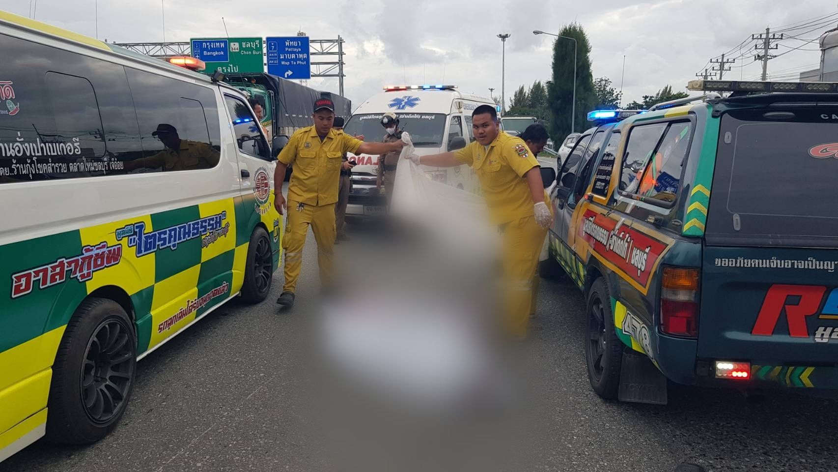 เมื่อเวลา 15.00 น.วันที่ 24 กันยายน2567พ.ต.ท.ชินวัชร์ ธิศาลา สว.(สอบสวน) สภ.เมืองชลบุรี ได้รับแจ้งมีเหตุรถชนกันมีผู้เสียชีวิตบนถนนเศรษฐกิจ ชลบุรี-บ้านบึง ขาเข้า อ.บ้านบึง หมู่ 3 ต.หนองรี อ.เมือง จ.ชลบุรี จึงรุดไปตรวจสอบพร้อมแพทย์เวร รพ.ชลบุรี และกู้ภัยไตรคุณธรรม พบศพ นายสมใจ อายุ 48 ปี อาชีพขี่รถ จยย.รับจ้าง เสียชีวิตสภาพโดนล้อรถเหยียบ ศรีษะแตกมันสมองกระจาย ใกล้กันพบรถจักรยานยนต์ ยี่ห้อยามาฮ่า สปาร์ค สีดำแดง ของผู้ตายล้มคว่ำอยู่มีถังแก๊สกลิ้งอยู่ข้างๆ ห่างไปประมาณ 5 เมตร พบรถกระบะยี่ห้ออีซูซุ ดีแม็กซ์ สีบรอนซ์เทา คู่กรณีจอดอยู่