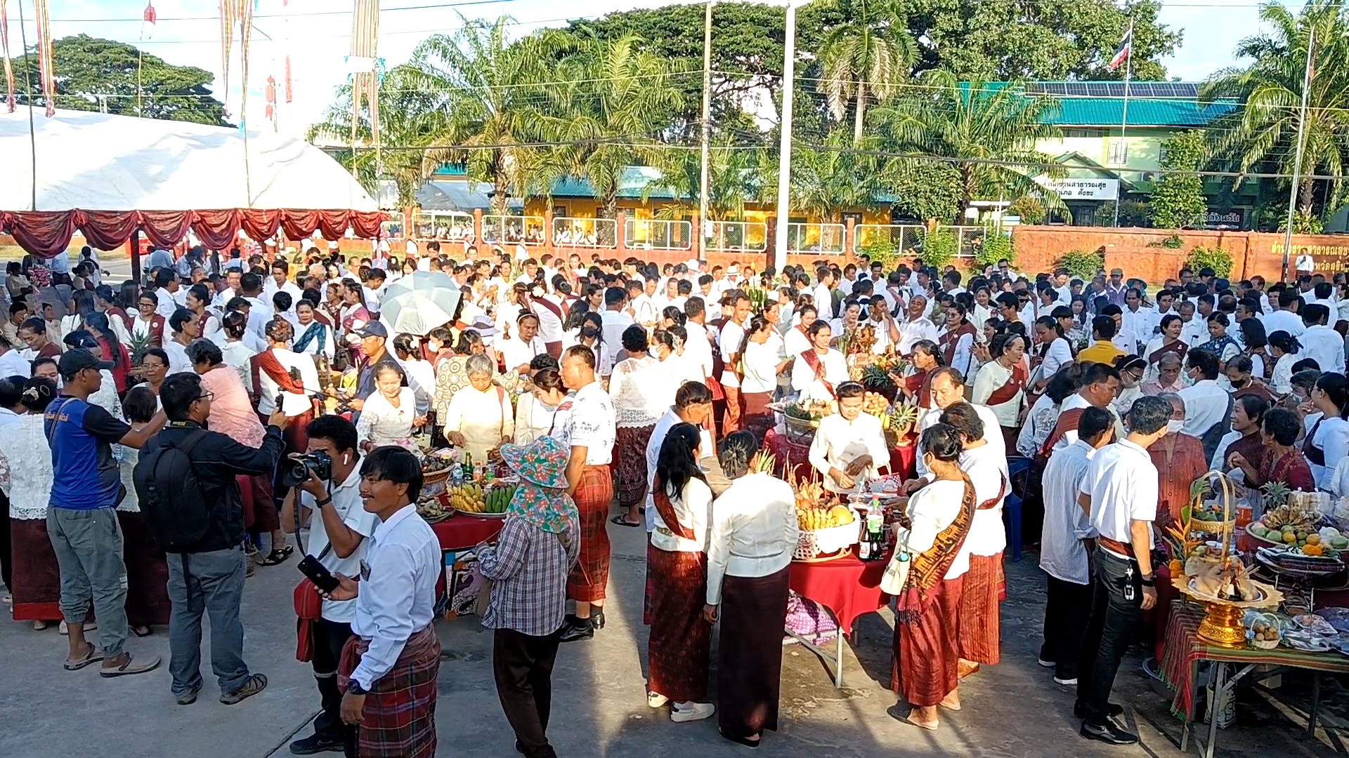 เมื่อช่วงเย็น วันที่ 26 ก.ย.67 ที่หน้าลานอนุเสาวรีย์พระยาสังฆะบุรีศรีนครอัจจะ อำเภอสังขะ จังหวัดสุรินทร์ นายสันติ โอฆะพนม นายอำเภอสังขะ เป็นประธานในการประกอบพิธีแซนโฏนตาบูชาบรรพบุรุษ โดยมีหัวหน้าส่วนราชการ คณะผู้บริหารองค์การบริหารส่วนตำบล และประชาชน ในพื้นที่ อ.สังขะ ร่วมกันนำเครื่องเว่นไหว้ อาหาร คาว หวาน น้ำดื่ม น้ำเปล่า น้ำหวาน สุรา ไก่ย่าง ปลาย่าง ผลไม้ ข้าวต้มมัด จัดวางไว้ในกะเฌอหรือขันโตก เพื่อประกอปพิธีเซ่นไหว้อนุสาวรีย์พระยาสังฆะบุรีศรีนครอัจจะ (เจ้าเมืองสังขะคนแรก) เซ่นไหว้ศาลปะกำช้าง รูปปั้นช้าง และศาลหลักเมืองสังขะ โดยมีหมอปะกำช้างและหมอพราหมณ์ เป็นผู้นำประกอบพิธีกรรมแซนโฏนตา พร้อมกันนี้ ได้มีการจัดพิธีรำบวงสรวงบูชาบรรพบุรุษจากตัวแทนองค์กรปกครองส่วนท้องถิ่นทั้ง 12 แห่ง จำนวนกว่า 300 คน