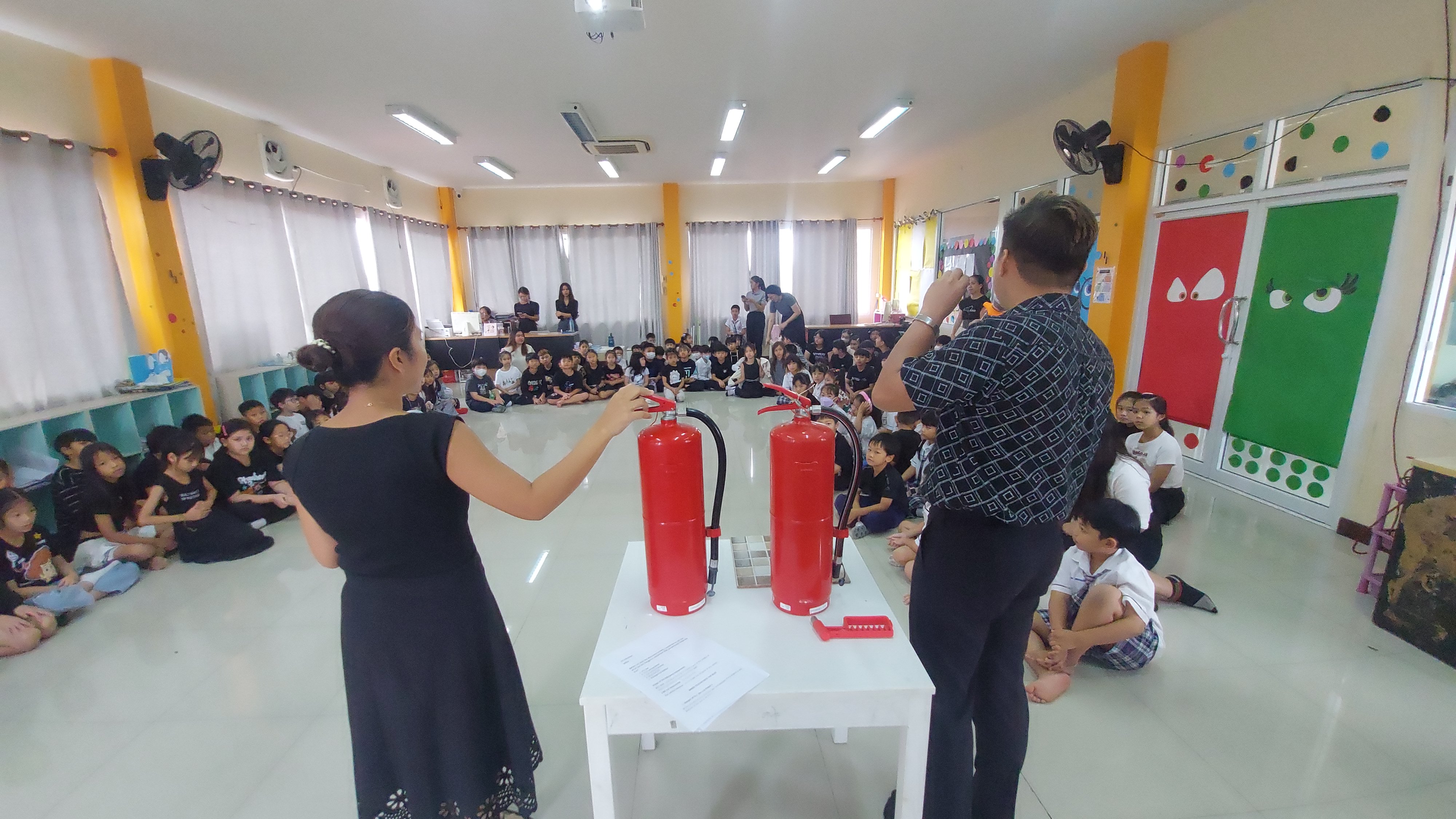 วันที่ 3 ตุลาคม 2567 ที่โรงเรียนนานาชาติอริสตา ต.ดงพระราม อ.เมือง จ.ปราจีนบุรี ครูสุธิดา สมาธิ ฝ่ายประสานงานแผนกประถมศึกษา นำครูและนักเรียนระดับชั้นอนุบาลถึงชั้นประถมศึกษาปีที่ 6 เข้าฟังการบรรยายเรื่องการเอาตัวรอดเมื่อเจอเหตุภัยพิบัติ โดยมีการบรรยายให้รู้จักการใช้ถังดับเพลิงเบื้องต้น การใช้ค้อนสำหรับทุบกระจกอย่างถูกต้อง