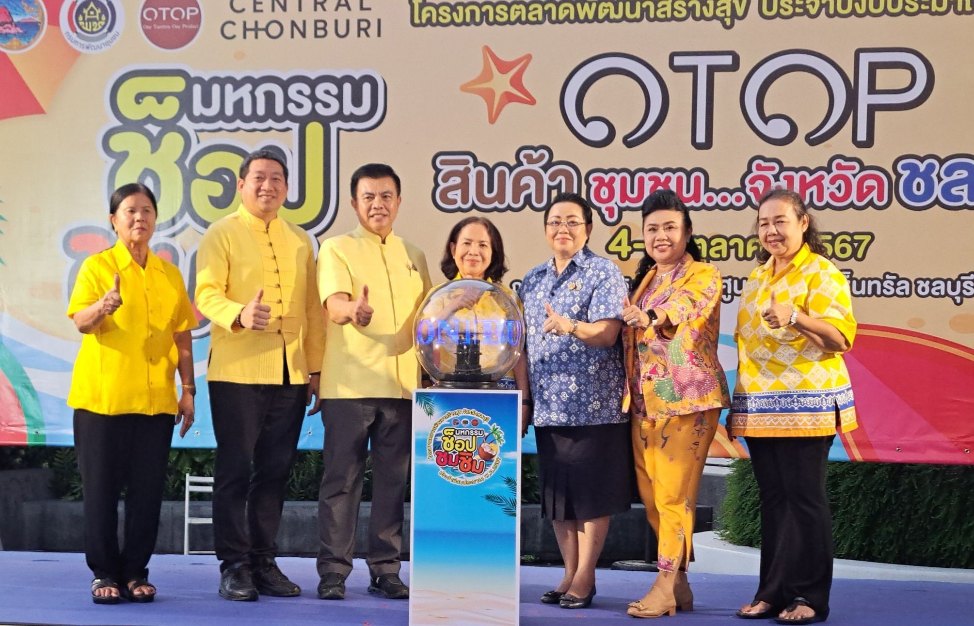 ที่บริเวณลานกิจกรรมหน้าศูนย์การค้า เซ็นทรัล ชลบุรี อำเภอเมืองชลบุรี จังหวัดชลบุรี นางสุพิศ วิริยบัณฑร ประธานคณะกรรมการเครือข่าย OTOP ชลบุรี เป็นประธานเปิดงาน “ตลาดพัฒนาสร้างสุข ประจำปีงบประมาณ พ.ศ. 2567” โดยมีนายวรนัฐ ติรประเสร็ฐสิน พัฒนาการจังหวัดชลบุรี พร้อมด้วยหัวหน้าส่วนราชการ และกลุ่มเครือข่าย OTOP ชลบุรีเข้าร่วมงาน