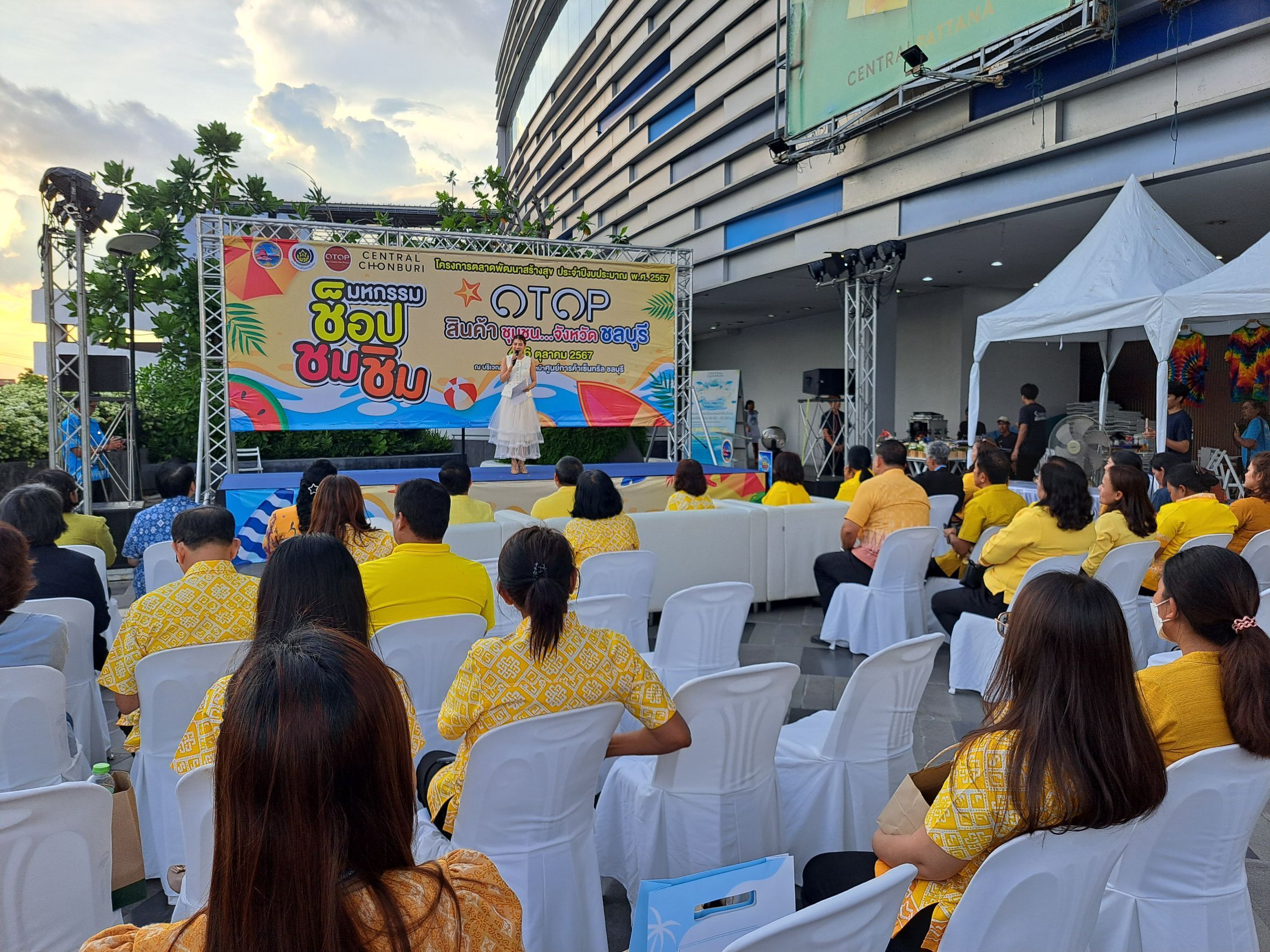 OTOP คุณภาพดี 1 – 5 ดาว จากผู้ผลิต ผู้ประกอบการ OTOPจังหวัดชลบุรี จำนวน 50 ร้านค้า สำหรับกิจกรรมภายในงาน ประกอบด้วย กิจกรรมส่งเสริมการขาย เพื่อเสริมสร้างรายได้ให้แก่ผู้ผลิต ผู้ประกอบการ OTOP ได้แก่ กิจกรรม LIVE สด ประชาสัมพันธ์สินค้าภายในงาน และกิจกรรมแจกคูปองเงินสด กิจกรรมการสาธิตอาชีพ (Work Shop) ได้แก่ การทำเสื้อมัดย้อม