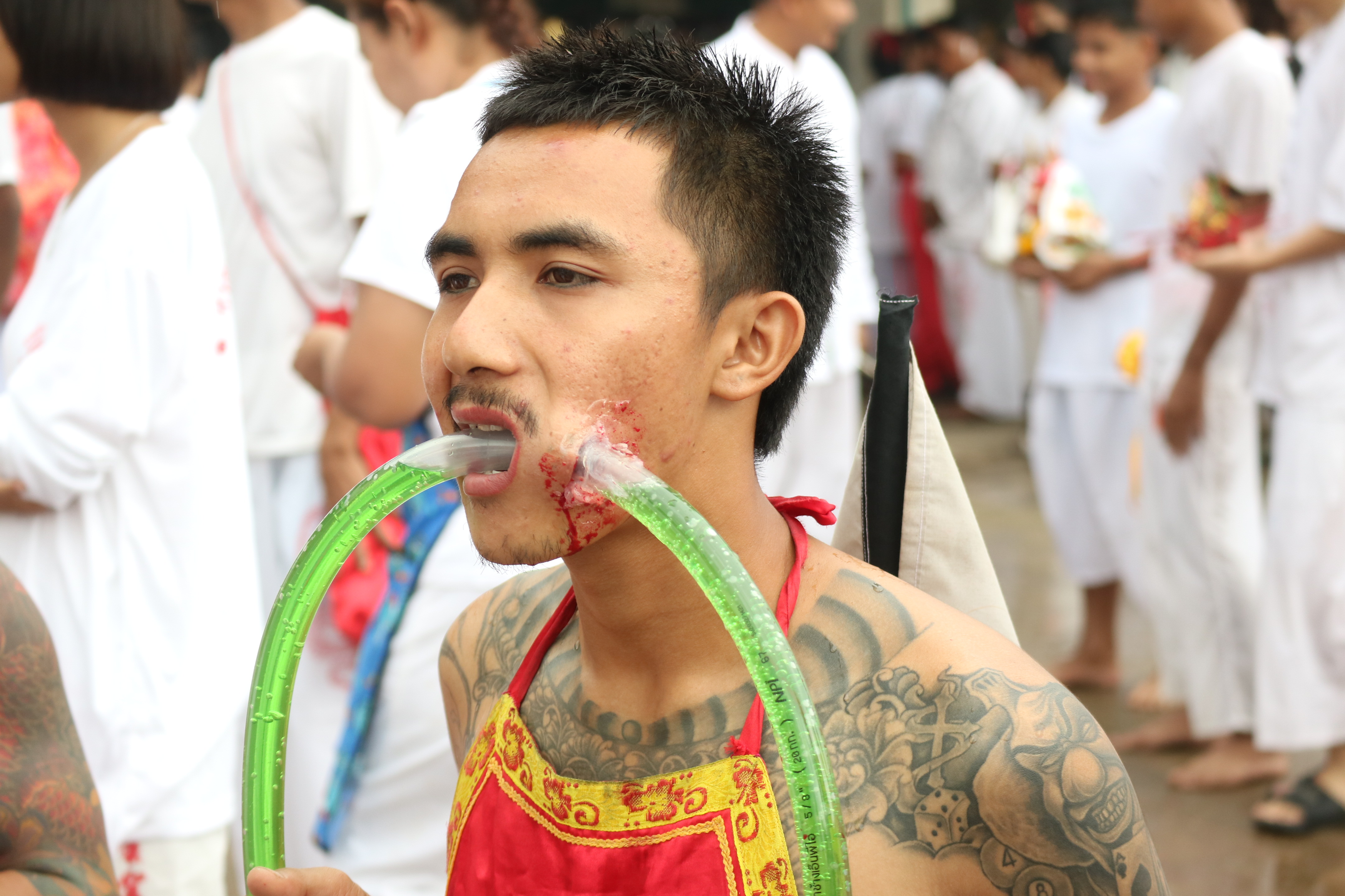 ผู้สื่อข่าวรายงานว่าเมื่อวันที่ 8 ต.ค. 2567 ที่ผ่านมา บรรยากาศที่ศาลเจ้าพ่อหมื่นราม ถนนรัษฎา ต.ทับเที่ยง อ.เมือง จ.ตรัง ในเขตเทศบาลนครตรัง ซึ่งเป็นศาลเจ้าเก่าแก่มีอายุมากกว่า 200 ปี ได้มีพิธีโดยคณะกรรมการศาลเจ้าทำพิธีอัญเชิญ องค์ท่าน “กิ๋วอ้วงฮุดโจ้ว” และองค์ศักดิ์สิทธิ์ หรือม้าทรง ที่ลงทะเบียนกับทางศาลเจ้านับพันองค์ ออกเที่ยว เยี่ยมเยียน ลูกหลานหรือโปรดสาธุชนภายใน “ตลาดทับเที่ยง” ภายในเขตเทศบาลนครตรัง ซึ่งสาธุชนผู้มีจิตศรัทธาจำนวนมาก ได้นุ่งขาวห่มขาว ร่วมกันเดินตามขบวนแห่องค์ศักดิ์สิทธิ์ เป็นจำนวนมากหลายพันชีวิต ทำให้บรรยากาศตลอดเส้นทางเต็มไปด้วยความคึกคักตลอดทั้งถนนที่องค์ศักดิ์สิทธิ์เคลื่อนผ่าน ท่ามกลางสายฝนที่ตกลงมาอย่างโปรยปราย