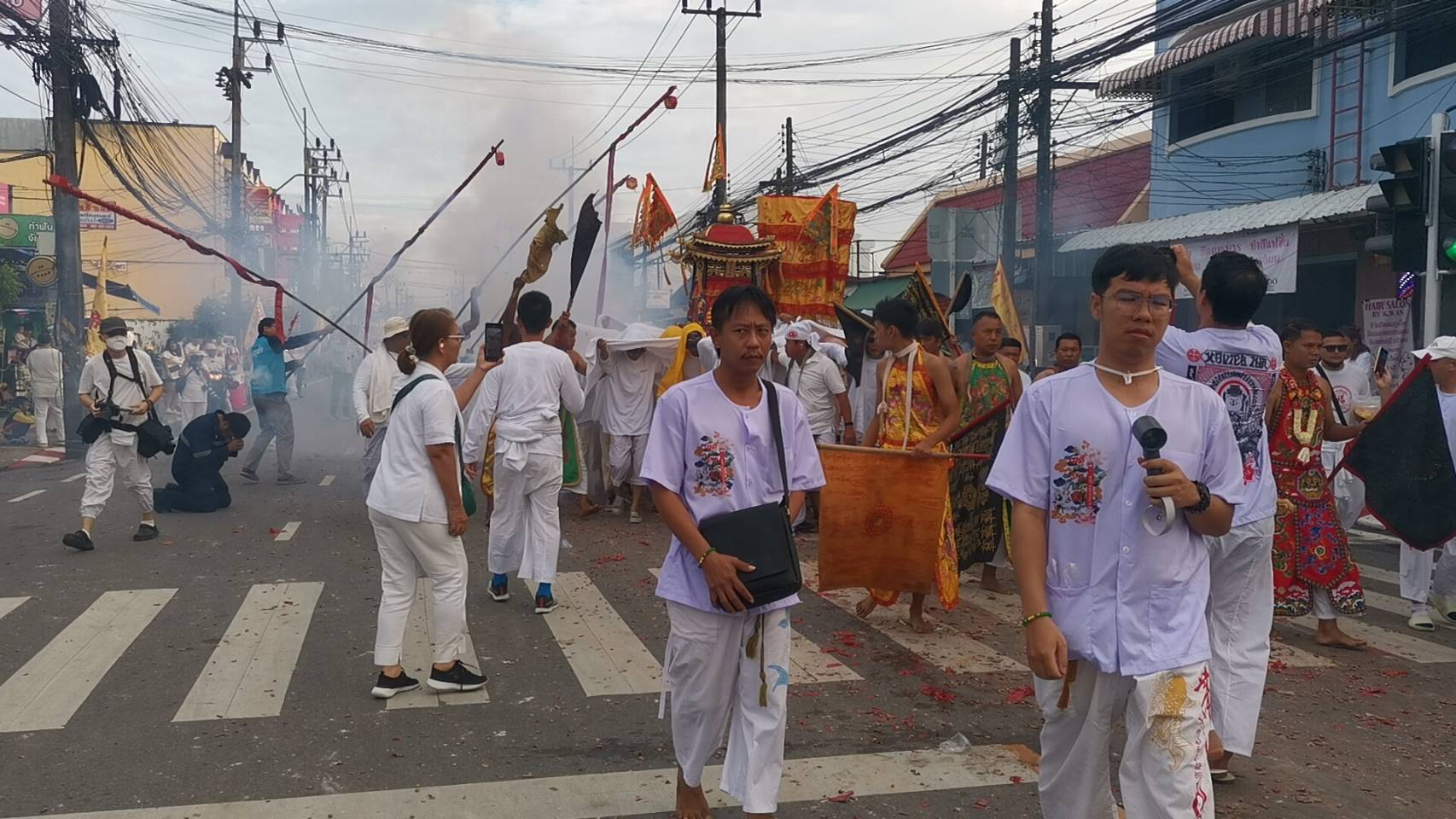 ผู้สื่อข่าวรายงานว่าเมื่อวันที่ 6 ต.ค. 2567 ที่ผ่านมาซึ่งเป็นวันที่ 4 ของประเพณีถือศีลกินผักหรือเจี๊ยะฉ่าย ประจำปี 2567 ของ จ.ภูเก็ต และเป็นวันที่ 3 ของการประกอบพิธีอิ้วเก้งหรือแห่พระรอบเมืองภูเก็ต เพื่อให้พรประชาชนที่เข้าร่วมประเพณีถือศีลกินผัก โดยในวันนี้ศาลเจ้าหลิมฮู้ไท้ซู่ หรือ ศาลเจ้าสามกอง อ.เมือง ซึ่งเป็นศาลเจ้าเก่าแก่อีกแห่งหนึ่งของจังหวัดได้แห่พระรอบเมือง โดยขบวนออกจากศาลเจ้าตั้งแต่เวลา 06.45 น.เคลื่อนขบวนไปตามถนนสายต่างๆและไปสิ้นสุดที่บริเวณริมทะเลปลายแหลมสะพานหิน อ.เมือง เพื่อประกอบพิธีอัญเชิญควันธูปกลับไปยังศาลเจ้าหรืออ๊าม โดยขบวนแห่จะประกอบด้วย ขบวนธง ป้ายชื่อ ขบวนรถของศาลเจ้าต่างๆ ขบวนเกี้ยวหามรูปพระบูชาต่างๆ ซึ่งจัดตามชั้นยศของเทพ จากนั้นตามด้วยขบวนฉัตรจีน และขบวนพระเกี้ยวใหญ่ หรือตั่วเหลียน ซึ่งเป็นที่ประทับองค์กิ้วฮ่องไต่เต่ โดยมีประชาชนและนักท่องเที่ยวได้ตั้งโต๊ะบูชาและจุดประทัดต้อนรับตลอดเส้นทาง