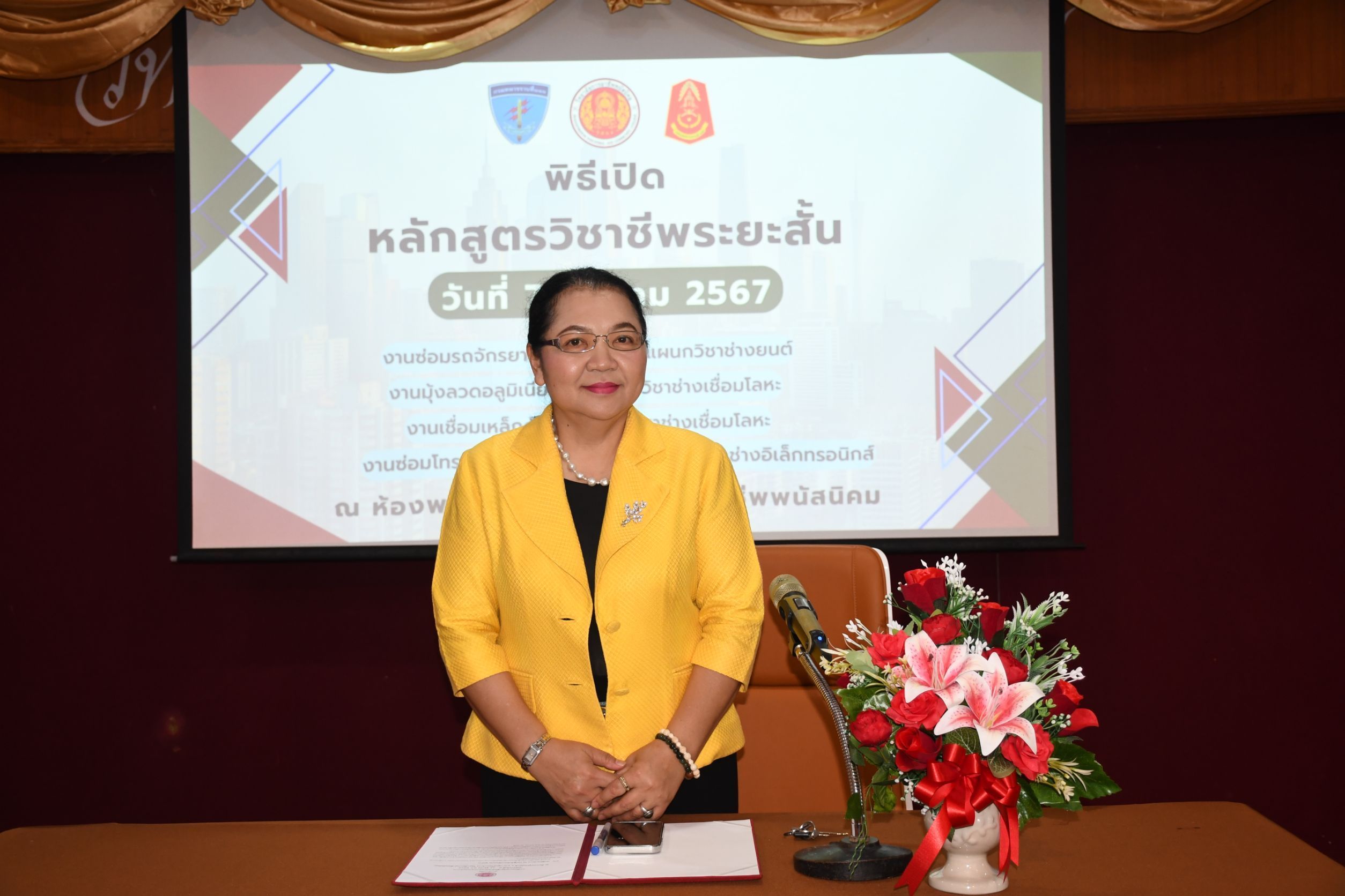 นางจารุวรรณ แก่นทิพย์ ผู้อำนวยการวิทยาลัยการอาชีพพนัสนิคม เป็นประธานเปิดการฝึกอบรมวิชาชีพสำหรับทหารกองประจำการ ณ ห้องประชุมพนัสบดี1 อาคารศูนย์วิทยบริการ วิทยาลัยการอาชีพพนัสนิคม อำเภอพนัสนิคม จังหวัดชลบุรี โดยมีคณะผู้บริหาร อาจารย์และเจ้าหน้าที่ ร่วมให้การต้อนรับ