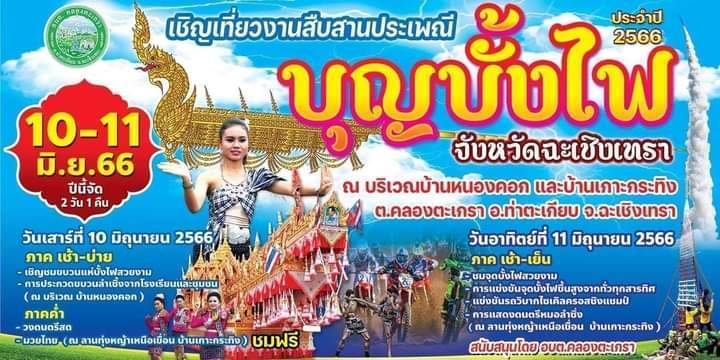 เมื่อวันพุธที่ 7 มิถุนายน พ.ศ. 2566 นายบุญนาค พรพจน์ธนมาศ หรือนายกฯเล้ง นายกองค์การบริหารส่วนตำบลคลองตะเกรา พร้อมคณะผู้บริหาร เข้าร่วมตรวจดูแลพื้นที่ที่เตรียมจัดงานประเพณีสืบสานบุญบั้งไฟ ประเพณีอันดีงามของชาวอีสาน ณ บริเวณริมชายน้ำอ่างเก็บกักน้ำสียัด บ้านเกาะกระทิง ม.13 ต.คลองตะเกรา อ.ท่าตะเกียบ จ.ฉะเชิงเทรา ที่บรรยากาศวิวสวยงามโอบล้อมด้วยธรรมชาติแห่งภูเขา พร้อมได้เชิญผู้สื่อข่าวร่วมแถลงข่าวบริเวณหน้างาน
