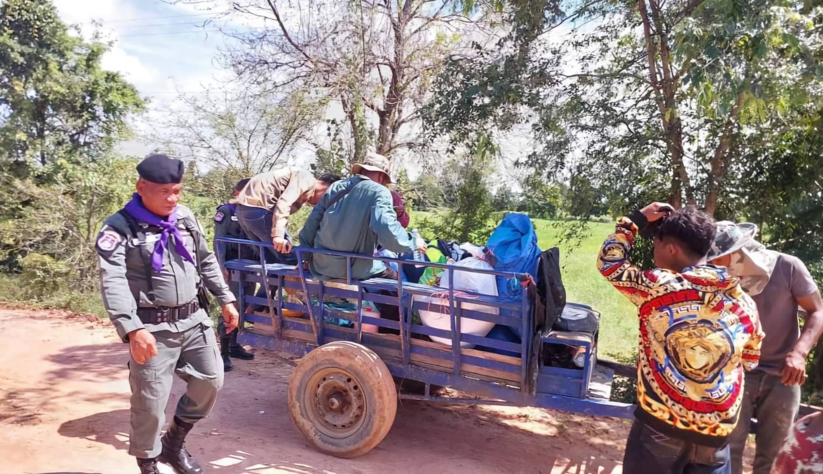 ต่อมา ขณะที่ กำลังพล ร้อย ฉก.ตชด.1 ลาดตระเวนมาถึง บริเวณบ้านคลองแผง ม.10 ต.ทัพเสด็จ อ.ตาพระยา จ.สระแก้ว ได้ตรวจพบรถอีแต๊ก หรือรถไถนาเดินตาม ต่อพ่วงกระบะท้ายบรรทุกแรงงาน พร้อมกระเป๋าสัมภาระมาเต็มคันรถ ขับมาตามถนนการเกษตร(ถนนลูกรัง)จากแนวชายแดน มุ่งหน้าเข้าพื้นที่ ชั้นใน จนท.จึงนำกำลังเข้าตรวจสอบพบ มีนายบัญชา วารินกุฎ อายุประมาณ 45ปี ชาวบ้านใน อ.ตาพระยา จ. สระแก้ว เป็นผู้ขับขี่รถอีแต๊ก เมื่อตรวจสอบบริเวณ กระบะบรรทุกต่อพ่วง พบมีแรงงานชาวกัมพูชานั่งโดยสาร มารวมทั้งหมด14คน เป็นชาย 7 คน และ หญิง 7 คน พร้อมกระเป๋าสัมภาระ ตรวจสอบไม่พบหนังสือเดินทาง หรือเอกสารอนุญาตทำงานในประเทศไทย แต่อย่างใด ซึ่ง1ในแรงงานกัมพูชา อ้างว่าหนีความอดอยาก จากบ้านเกิดชักชวนกัน ลักลอบเข้าไทย เพื่อมาหางานรับจ้างทำ